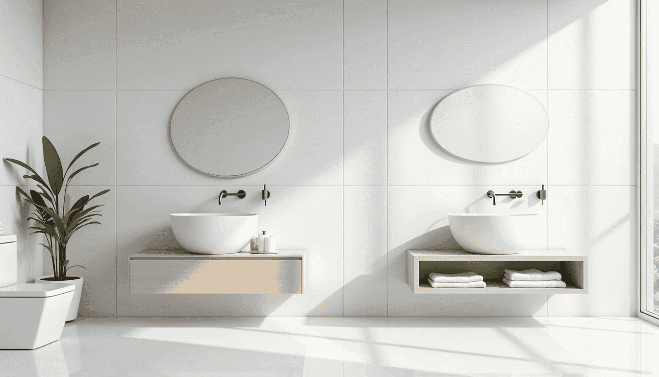 Floating Vanities: Install floating vanities to maximize floor space. They provide a contemporary feel and make cleaning easier.