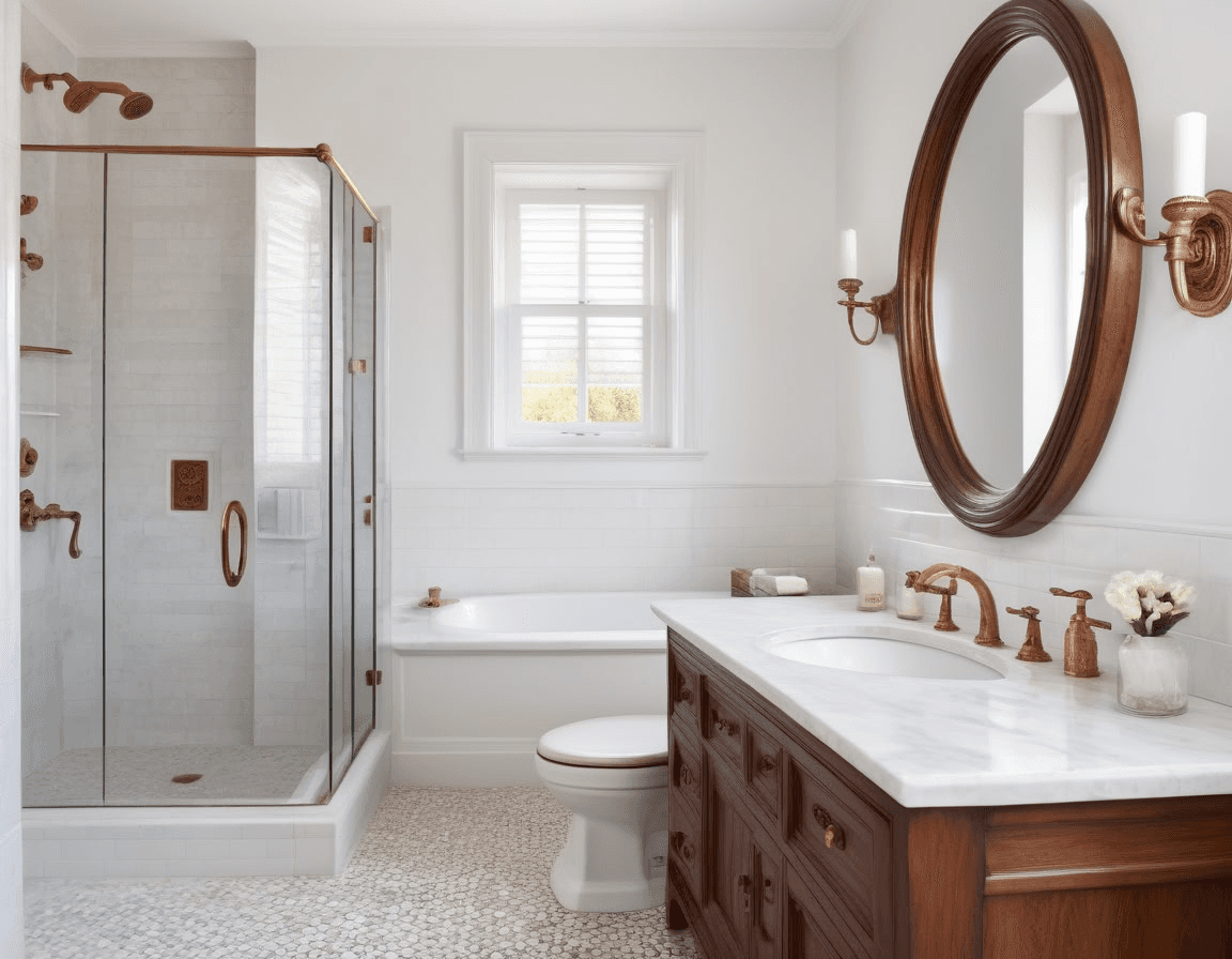 Incorporating traditional design with vintage elegance can transform your bathroom into a timeless retreat. You can achieve this aesthetic by focusing on key elements that evoke classic charm.