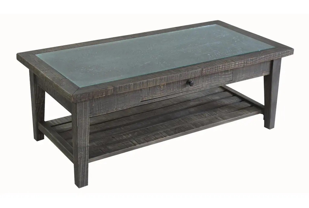 Combining sleek design with practicality, the Grey Coffee Table from Living Spaces offers built-in storage to keep your living area organized. Its clean lines make it a perfect fit for both contemporary and minimalist interiors, while the added functionality makes it an ideal piece for busy homes.