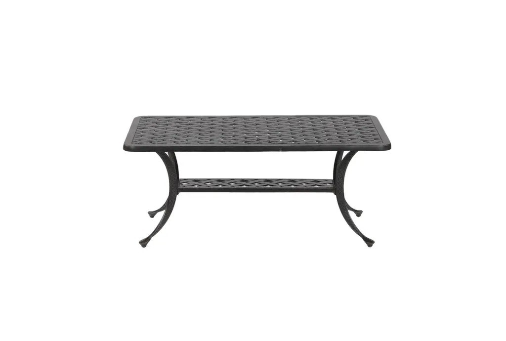 With its practical design and integrated storage shelf, this dark bronze coffee table offers both functionality and elegance, perfect for organizing outdoor essentials while adding style.