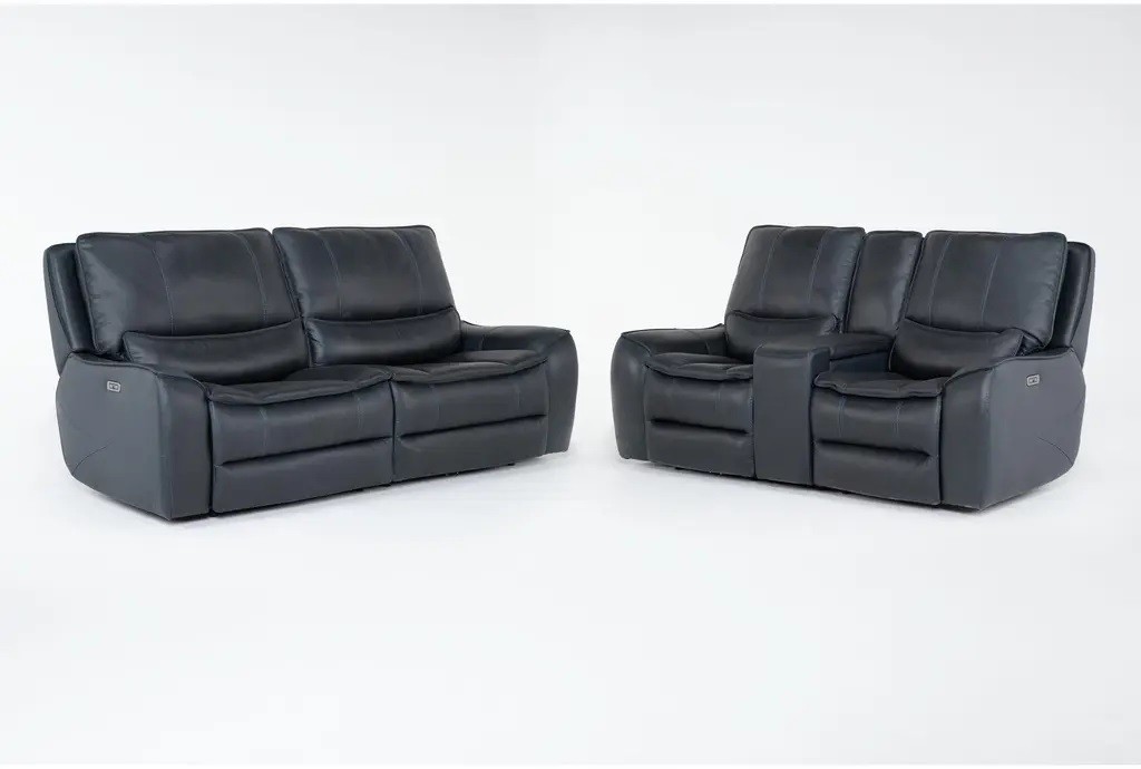 Montana Blue Leather 2-Piece Power Zero Gravity Reclining Set