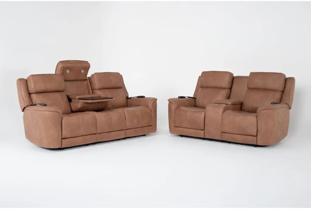 The luxurious Montana set features top-grain leather and advanced power reclining functions, including Zero Gravity for maximum comfort. With power headrests, USB ports, and wireless charging, it blends sophisticated design with high functionality, making it ideal for any upscale living room.