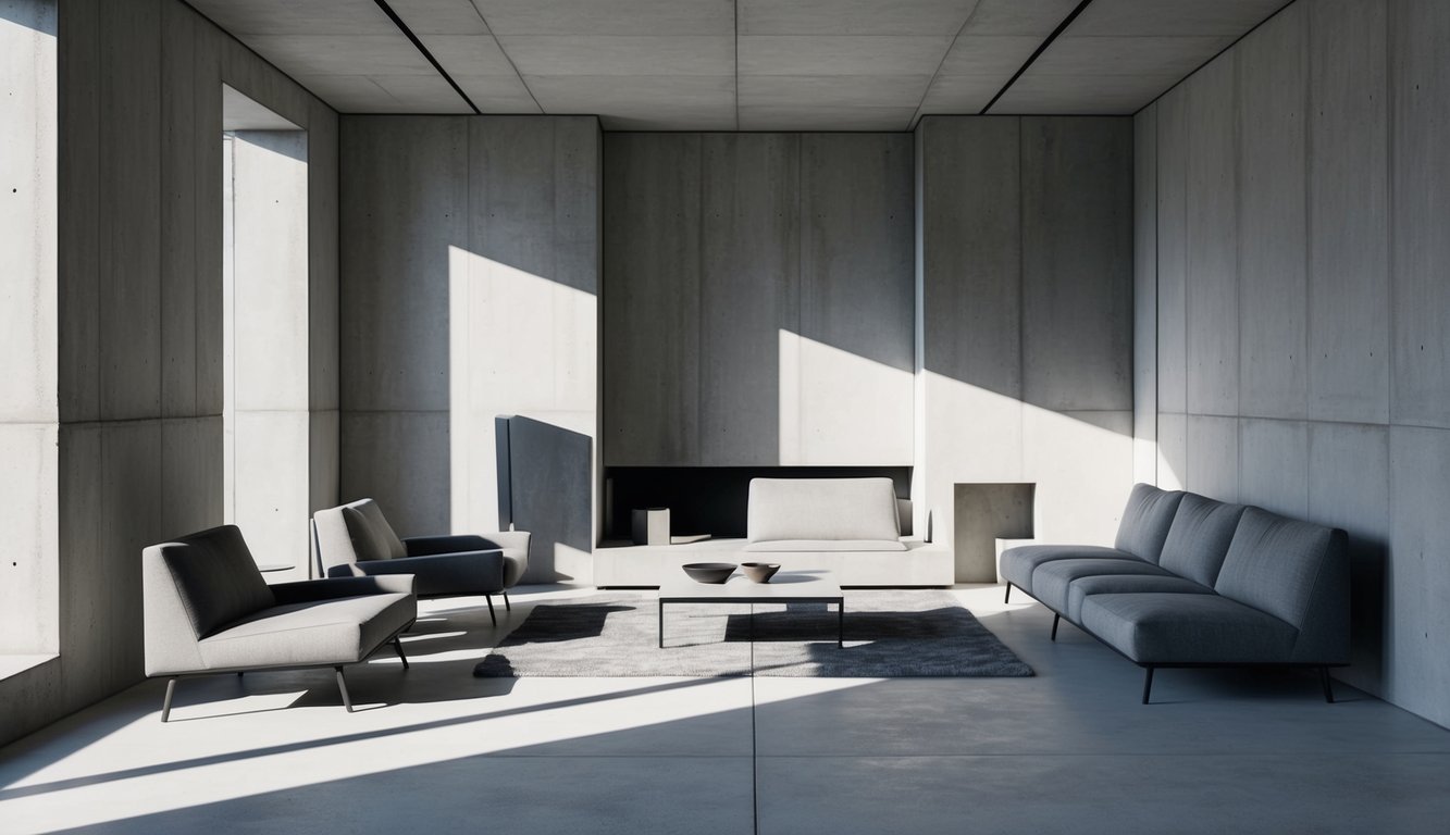 Minimalist brutalism merges brutalist aesthetics with minimalist principles. You'll find clean lines, uncluttered spaces, and a focus on essential elements. The color palette is typically neutral, with shades of white, gray, and black dominating.
