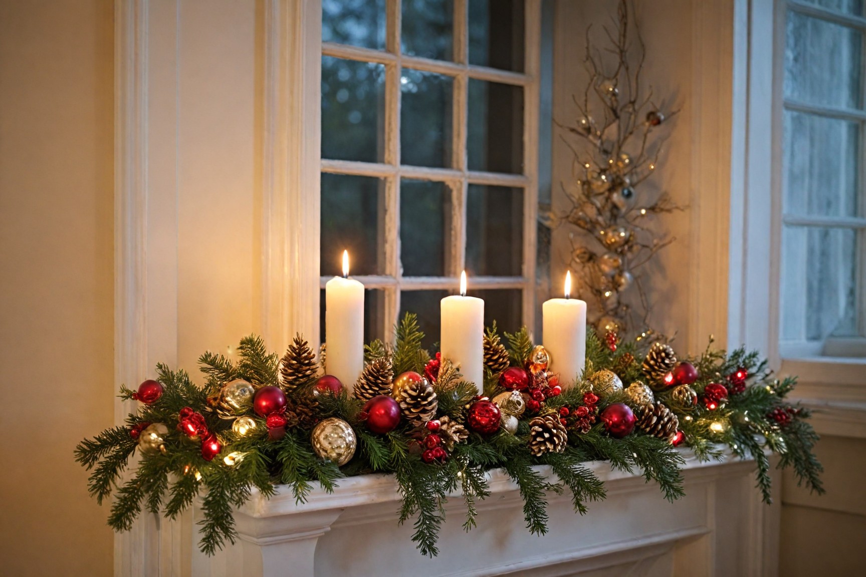 Windowsills: Add candles, mini wreaths, or small ornaments.