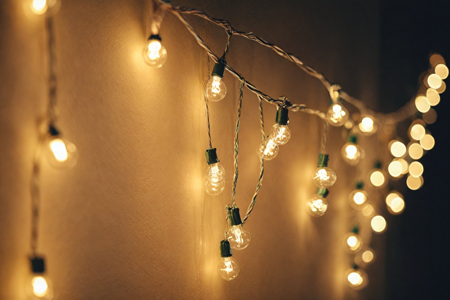 String lights along vertical surfaces such as window frames, curtain rods, or bookshelves to add warmth and brightness without cluttering the space.