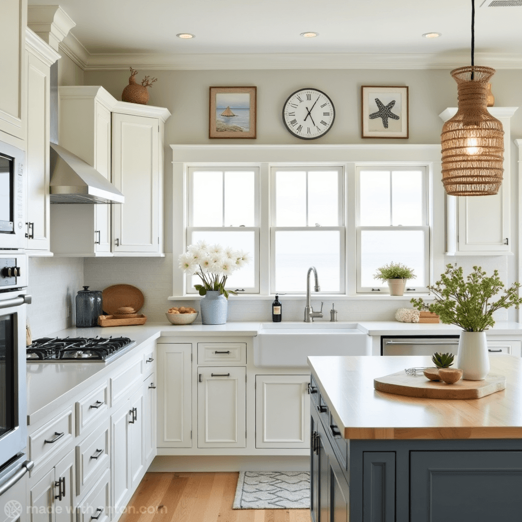 Natural light enhances the Coastal look by making spaces bright and airy. This style works well in rooms with large windows, tall ceilings, and skylights that add to the free and breezy feel.