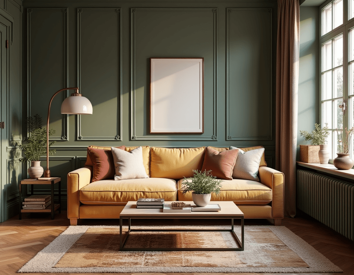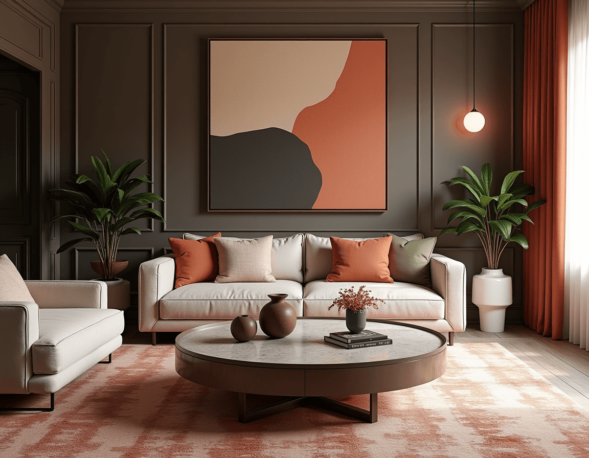 This classic setup doesn’t fail. Placing the coffee table directly in front of the sofa with even spacing on both sides creates balance, working especially well in symmetrical layouts. It’s a natural fit for standard 3-seaters, offering easy access from all sides.