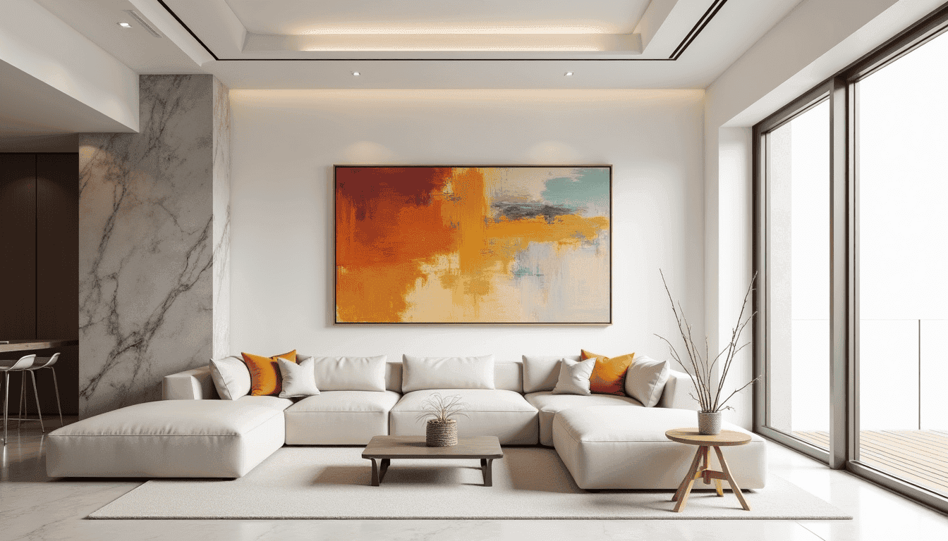 Statement Art: Large-scale artwork works best in minimalist settings. Placing a single, dramatic piece above your sofa can unify the space and draw attention effortlessly.