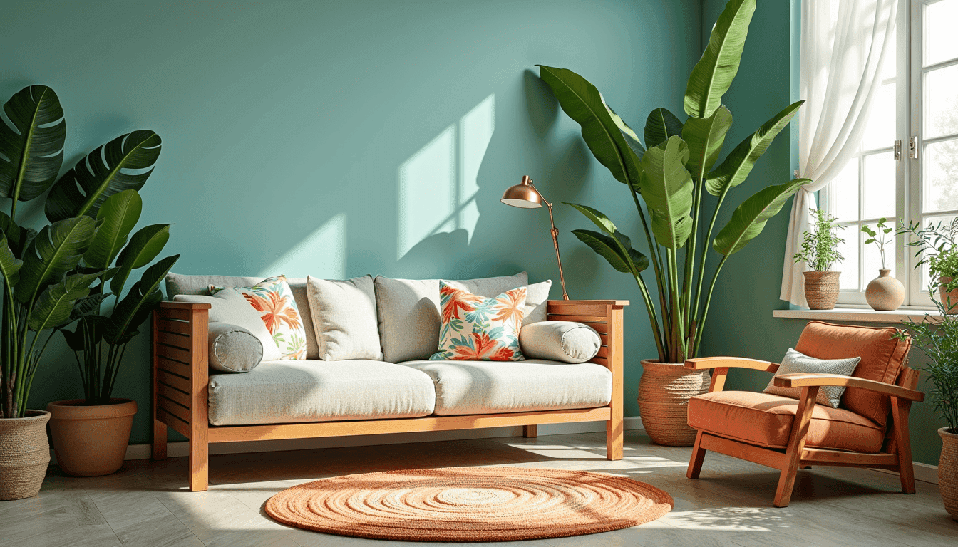 Combine these elements to establish a lively, tropical atmosphere. Keep in mind that the right balance between colors and greenery enhances visual interest. Use warm tones to invoke coziness while maintaining vibrancy in your decor.