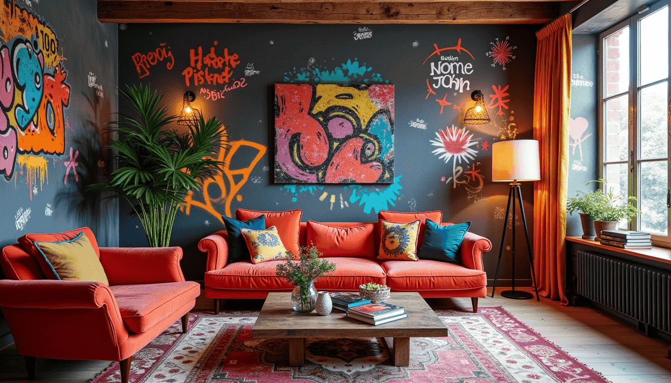 Textures: Mix materials like metal, wood, and glass. This variety can complement the gritty feel of graffiti while keeping the space stylish.
