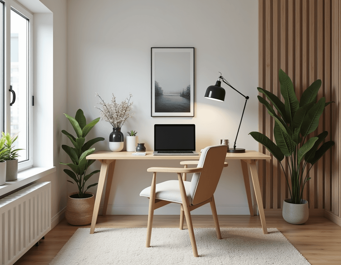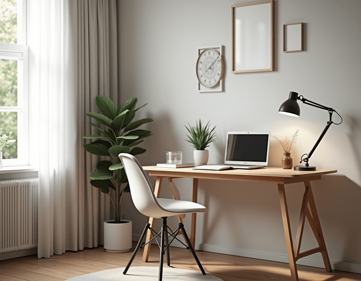 Is a slim laptop all you need, or are you running multiple monitors, professional speakers, and a docking station? Your gear will dictate how deep and wide your desk needs to be. Factor in space for other home office essentials, like a reading lamp, notebooks, and space for coffee.