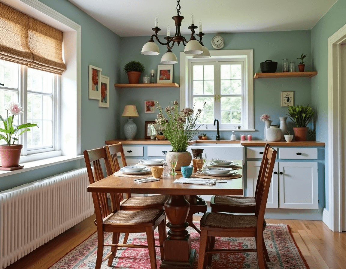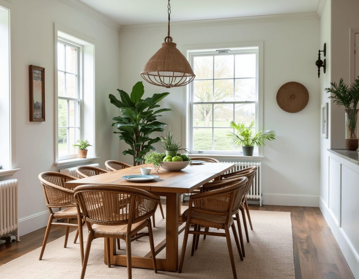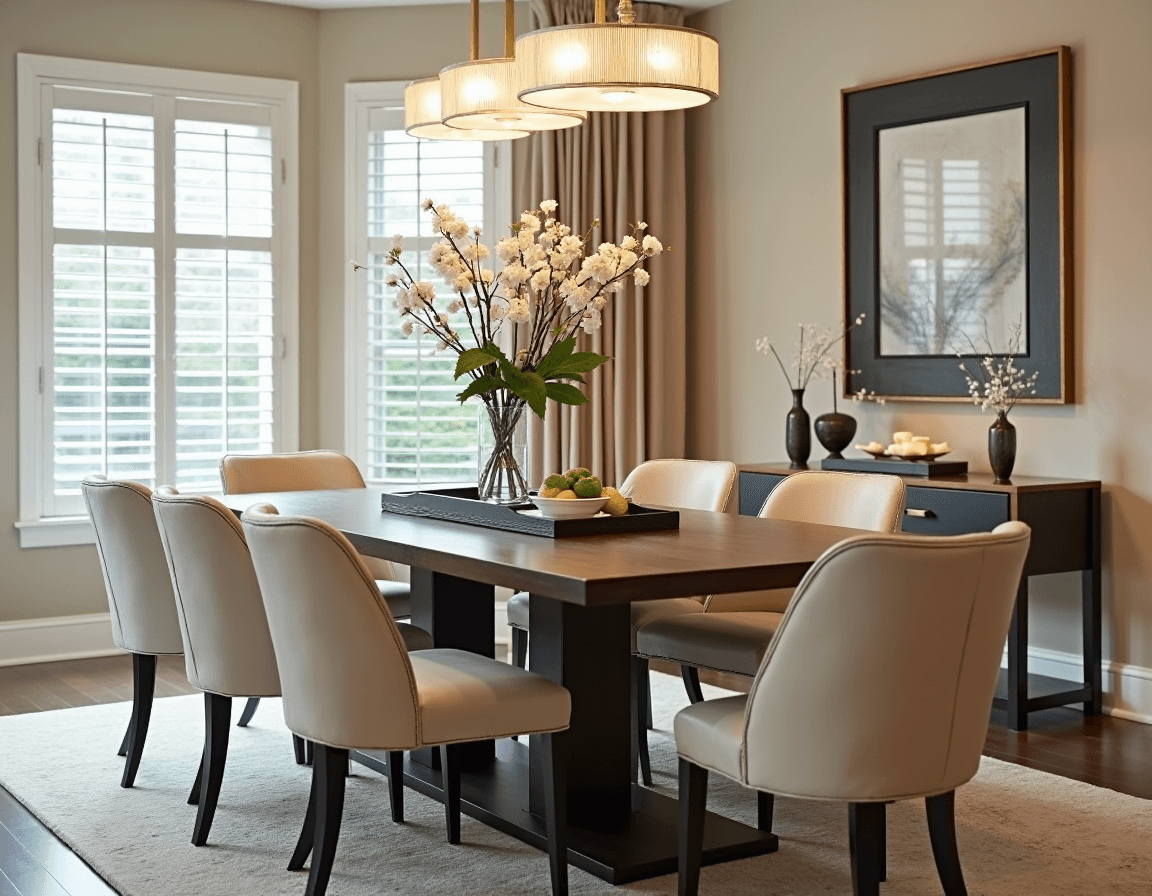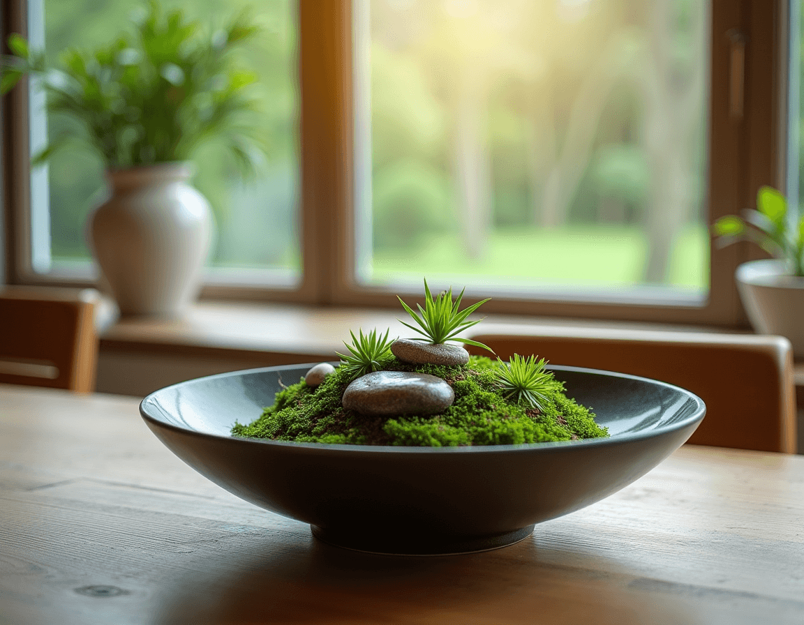 A shallow bowl filled with moss, polished stones, or seashells adds natural texture and soothing colors to your table. Choose a ceramic or glass vessel that complements your dining room interior design, and feel free to switch seasonally for a simple refresh — maybe pinecones in winter and shells in summer.