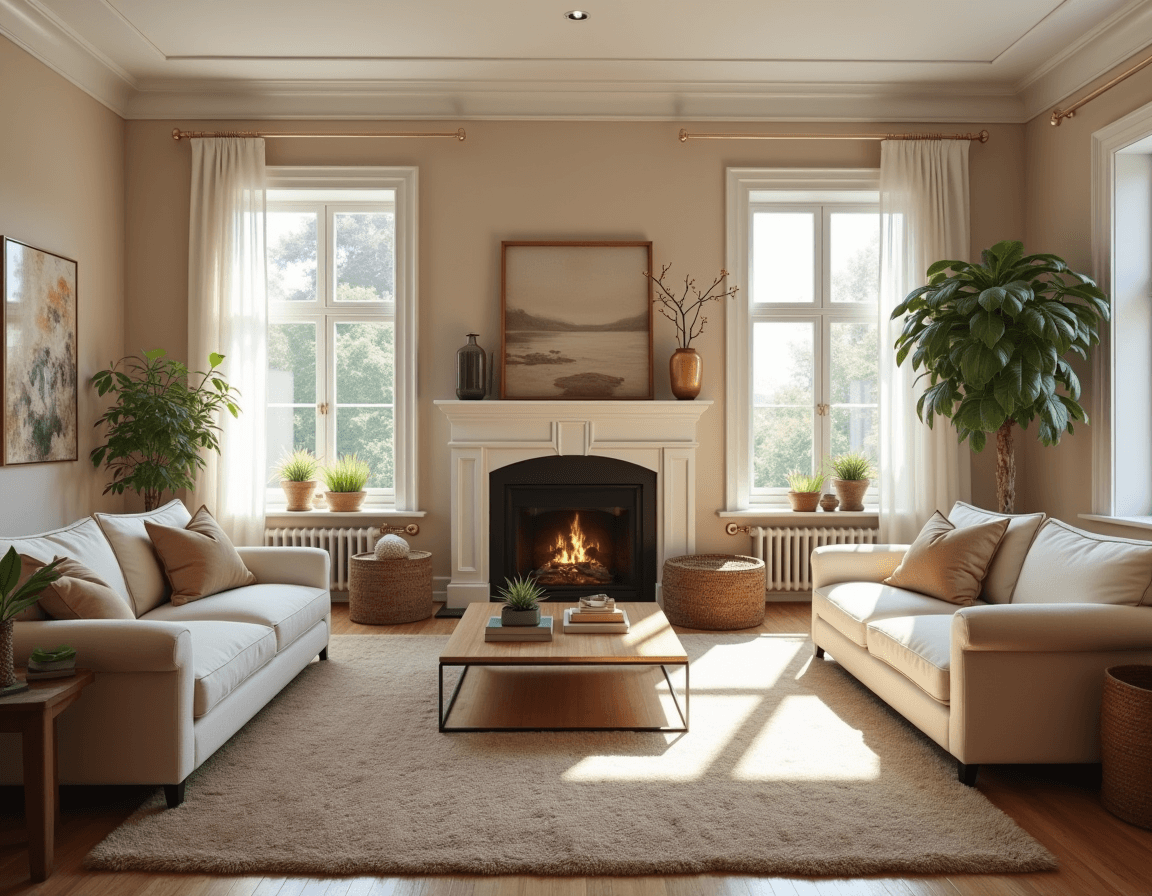Emphasize symmetry and conversation-encouraging layouts: Position sofas and chairs to face one another across a central coffee table. This creates a balanced arrangement that naturally encourages conversations during formal entertaining.