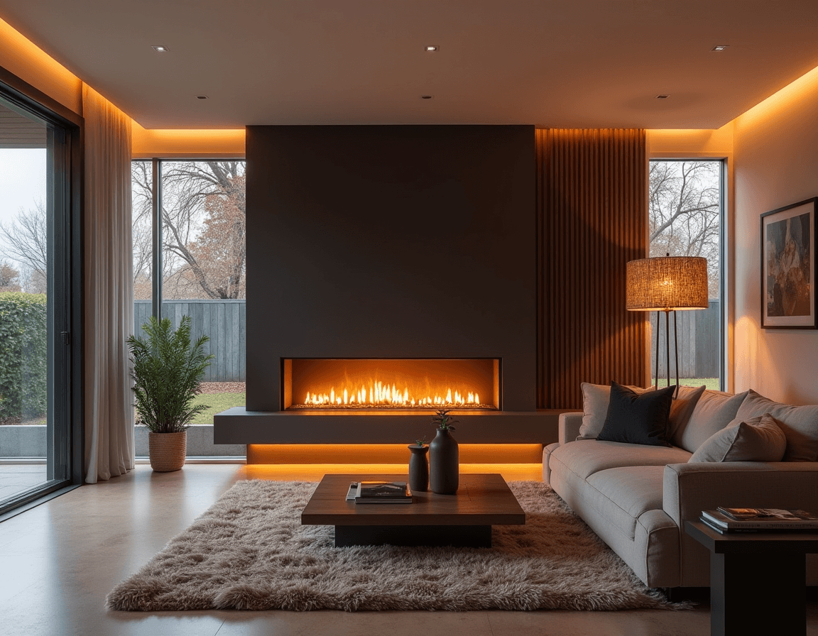 Soft LED lights around the hearth, hung like a garland or over a mantel, add a warm glow without the hassle of a real fire. This subtle flicker can also highlight architectural details like a stone chimney or wood mantle, creating a cozy vibe. Plus, LED lights are energy-efficient and easy to install, making them a smart and simple upgrade.