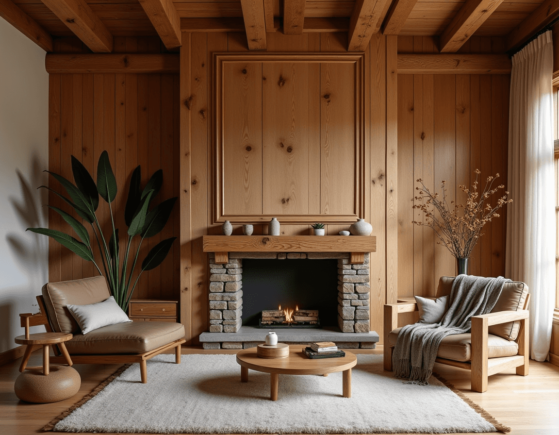 Use wood panels to frame the fireplace