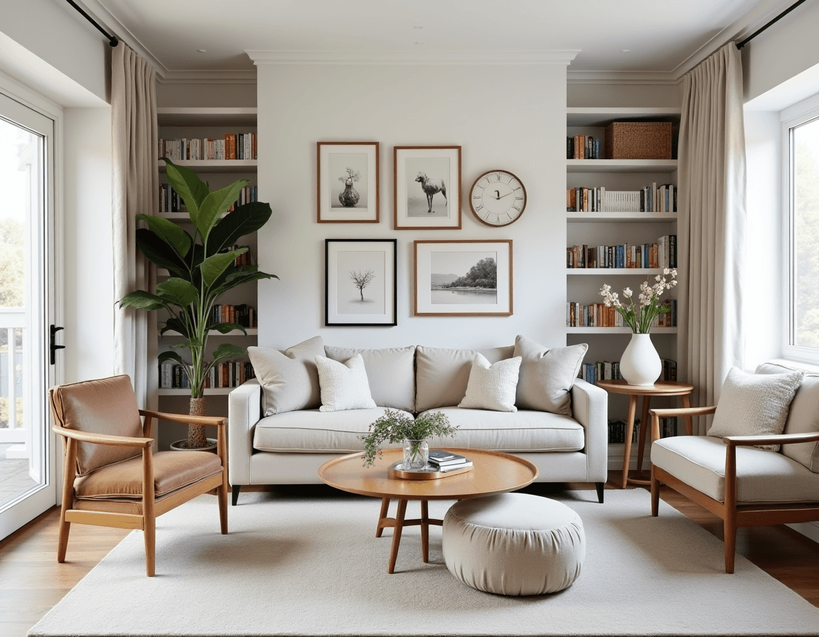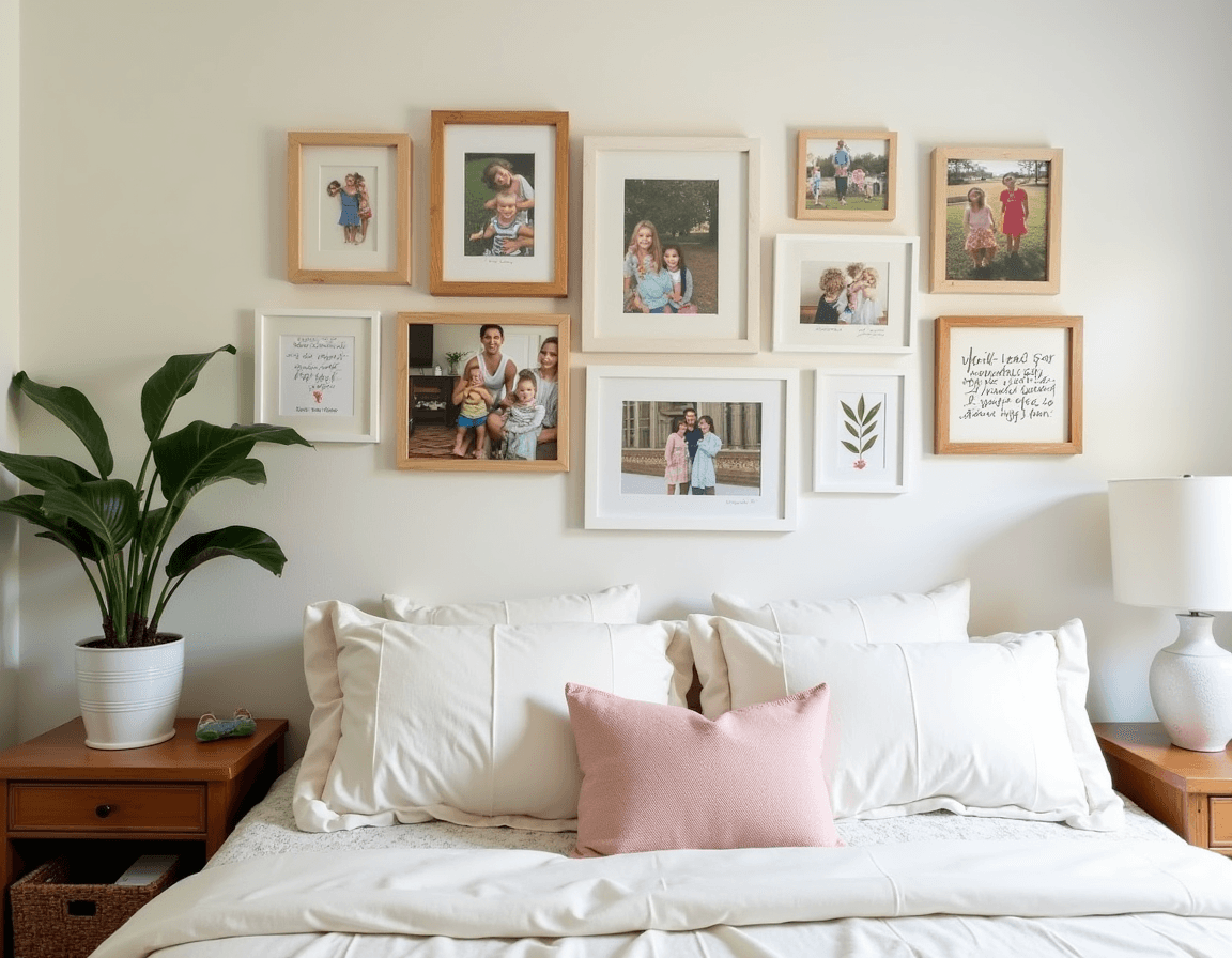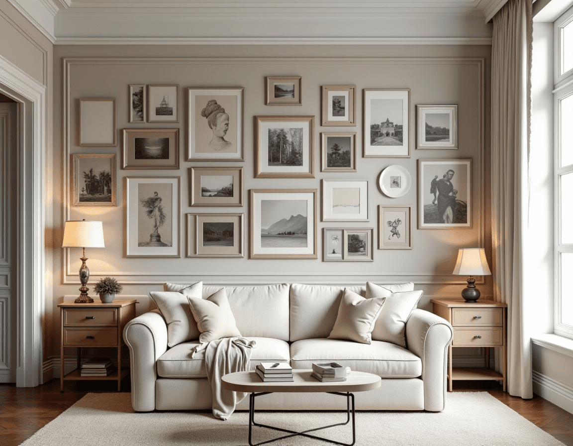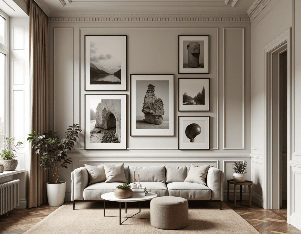 To keep things feeling intentional, lay out your gallery wall before putting it up, measure consistent spacing, and repeat a few colors or frame styles. Balancing the amount of negative space between frames avoids dense or sparse gallery walls and brings emotional rhythm to the room.