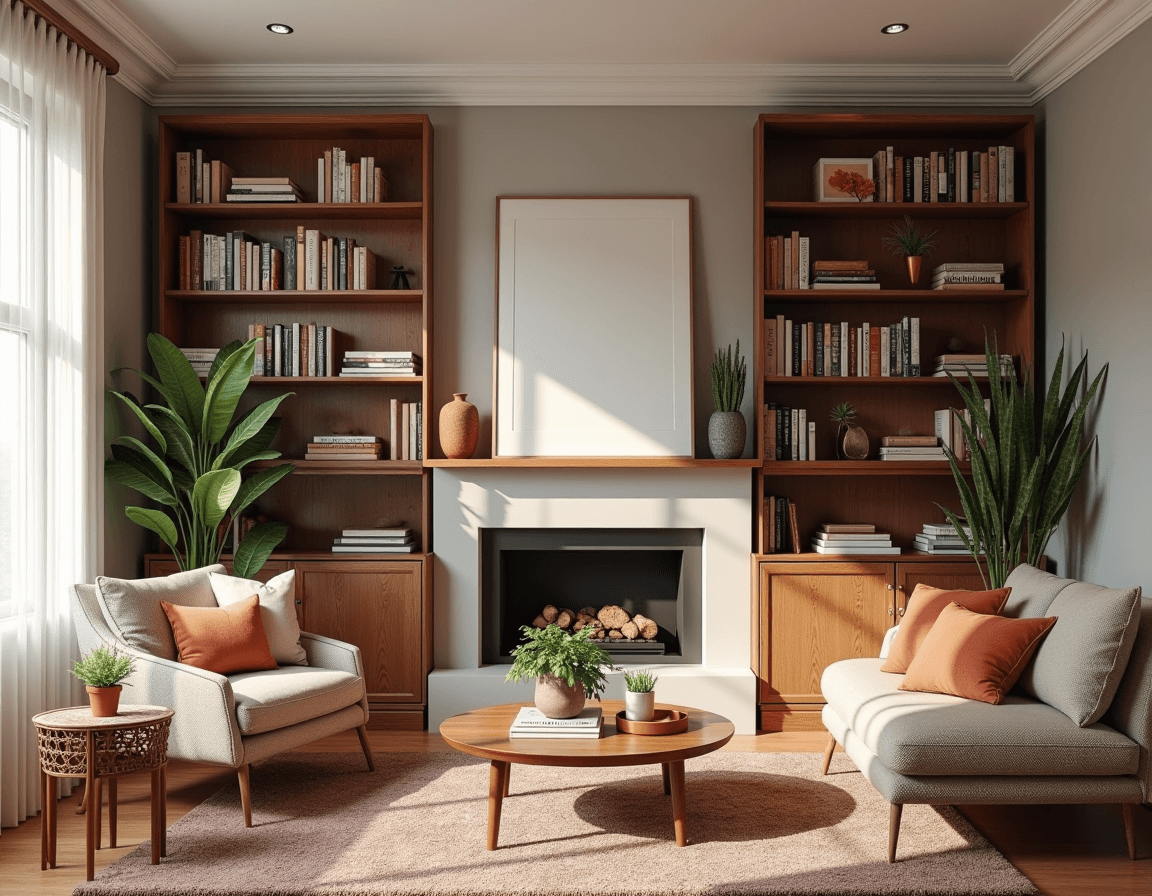 Imagine a tall fern or leafy plant standing next to a framed artwork, with a quirky small object or two anchoring the vibe. The combination of height, texture, and color might feel complicated, but it’s a tried-and-true way to add balance to a bookshelf. A plant makes the room feel fresh, artwork creates a focal point, and small objects tie it all together.