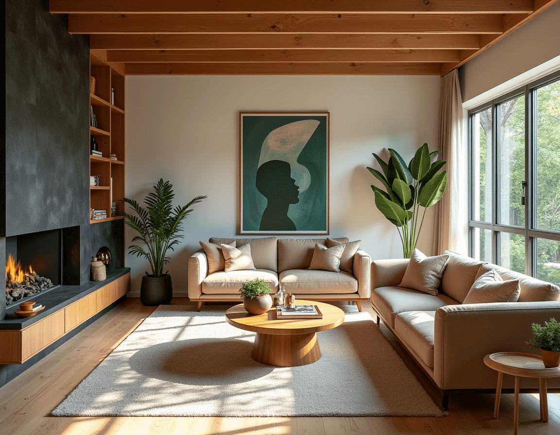 Whether you have a bold print, original abstract painting, or black-and-white family portrait, artwork is the heartbeat of your living room’s personality. When it comes to placement, aim to hang art at eye level (about 57 to 62 inches from the floor) or above the sofa. It’ll draw the eye to the seating area and give your space a curated feel. Don’t forget other spots like above a fireplace or console table — these are also prime real estate for making a statement.