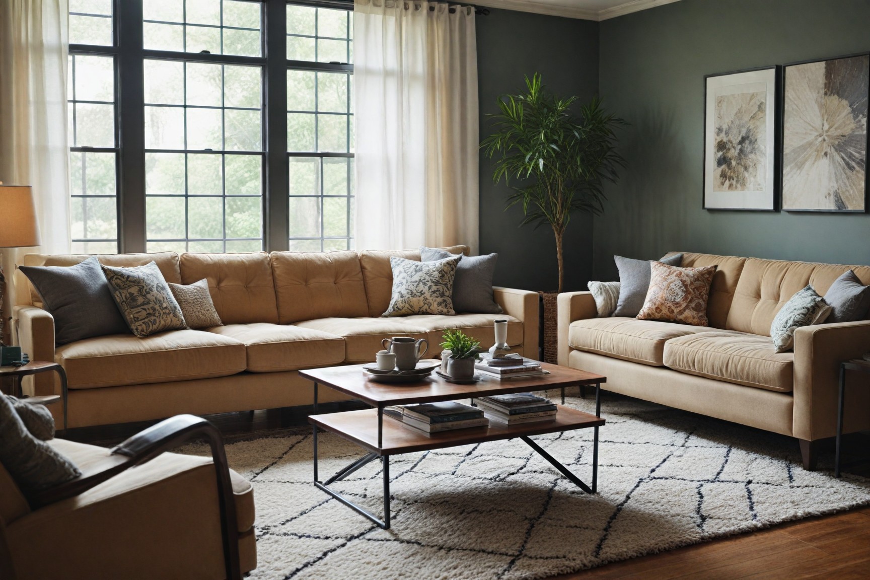 Remember scale: Choose furniture that fits the size of the room. For example, large sectionals work better in open living rooms, while smaller sofas or loveseats make sense in more compact areas.