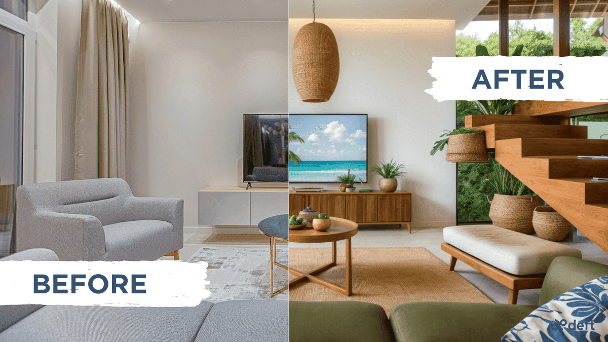 Accuracy: Onton “Imagine” better understands depth and perspective than all competitors we’ve tested. This makes it far more accurate when you’re restyling an existing room. It also uses our custom models, which output higher resolution renders and are more photo-realistic.