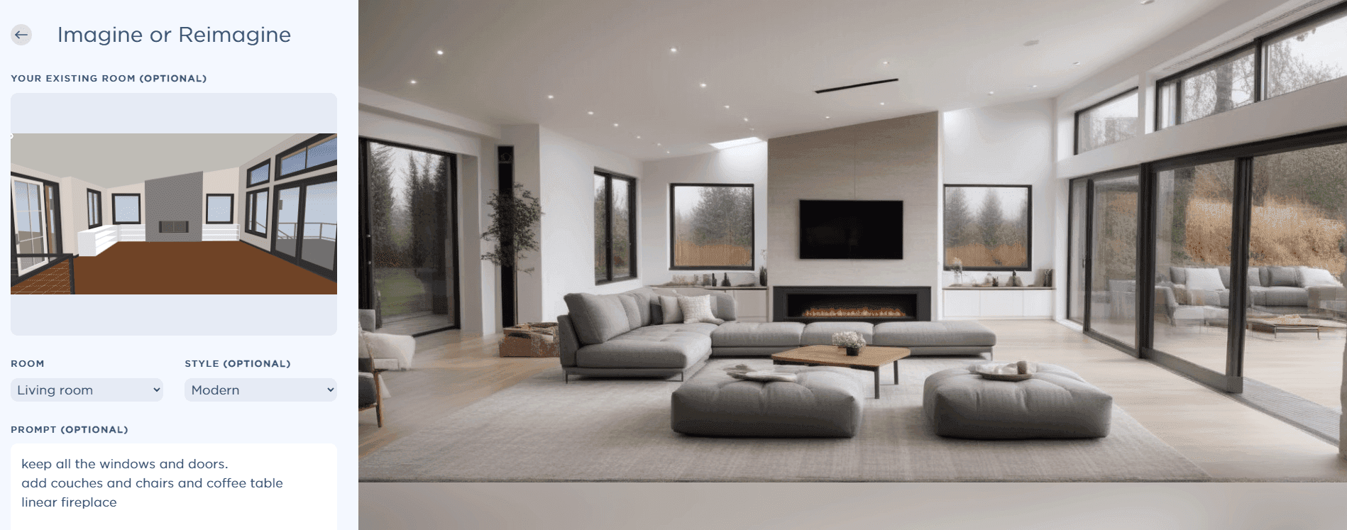 If you don’t have a space you want to restyle, you can also make something completely fresh! Give it a prompt and some additional details, and it will render a photo-realistic version straight from your imagination.