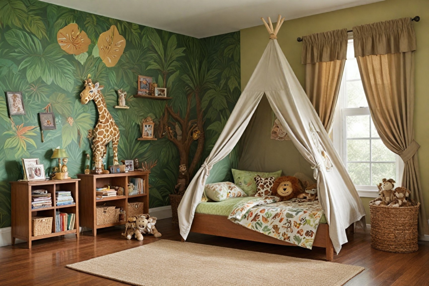 Add educational materials about different species and ecosystems to make the space both fun and informative. Create an interactive learning experience with wall decals of animals and plants, and consider adding a small reading nook with jungle-themed books to complete the adventure.