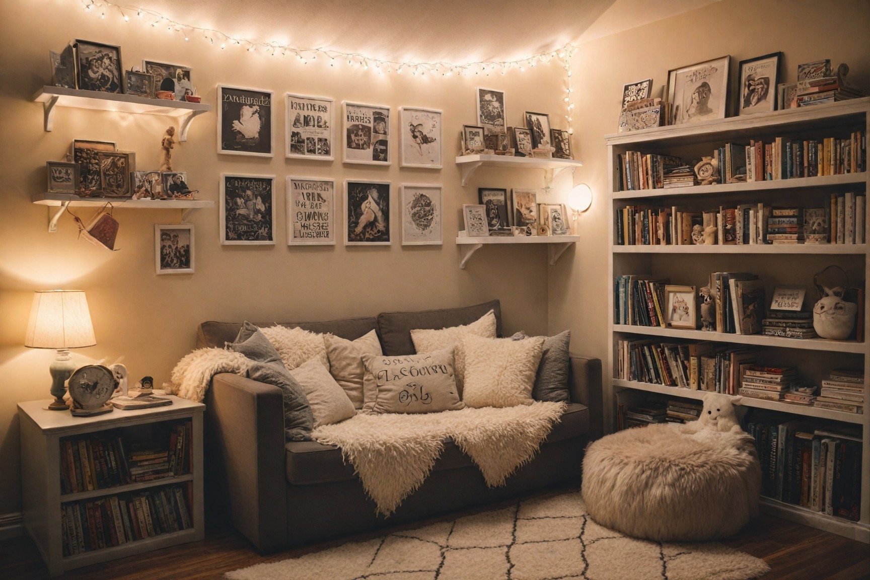 Incorporate literary-themed decorations, like quotes from beloved children’s books and illustrations, to inspire and make the space magical. Add soft textiles, like throw blankets and pillows, to enhance the nook's coziness.
