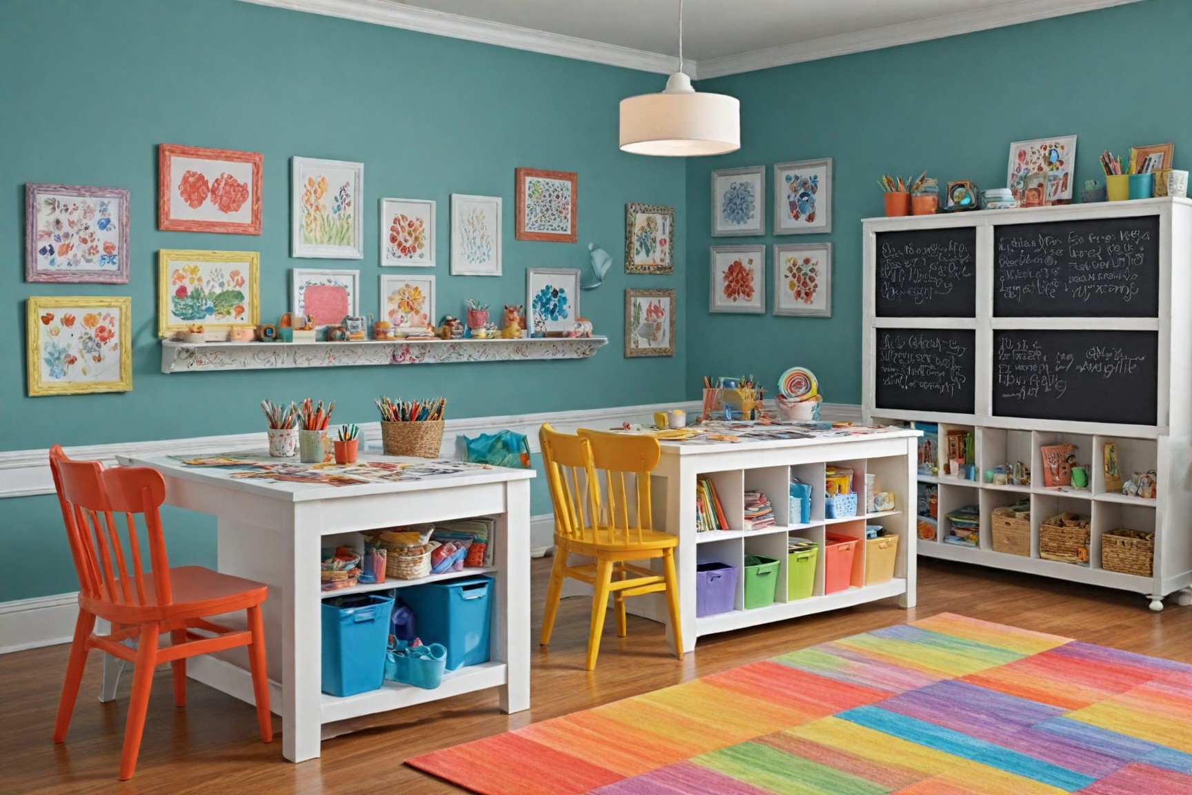 Add accessible storage solutions, such as bins and shelves, for organizing art supplies. This setup not only creates a fun and engaging environment but also fosters the development of a child's artistic skills. Incorporate display areas for showcasing their artwork to encourage pride and creativity.