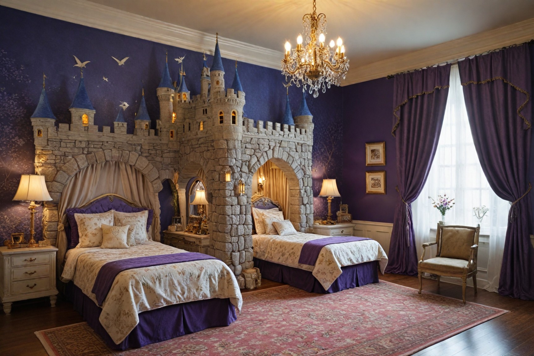 Use majestic drapes to enhance the royal ambiance. Incorporate regal colors like royal blue, purple, and gold to bring the theme to life. Add playful elements such as a slide from the bed or secret compartments hidden within the room to make the space both functional and enchanting.
