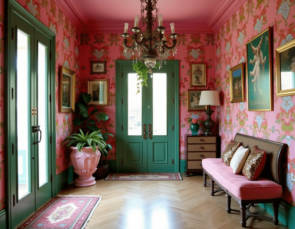 Maximalism is known primarily for bold color palettes. Depending on the sub-style, palettes can be highly saturated pinks, oranges and greens, rich jewel tones, or contrasting colors, such as a rich pink and a bright green.