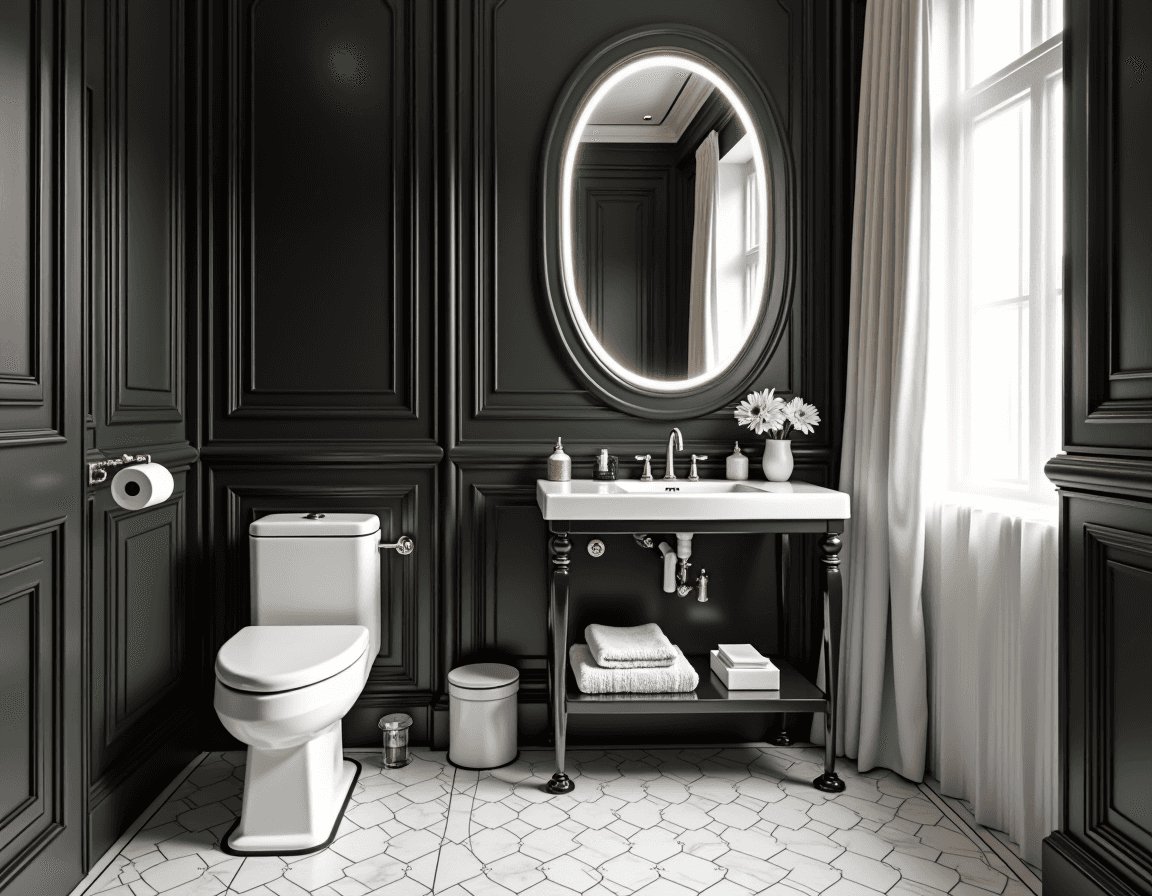 Learn how AI interior design tools can help you visualize dramatic powder bathroom ideas before laying down the grout.