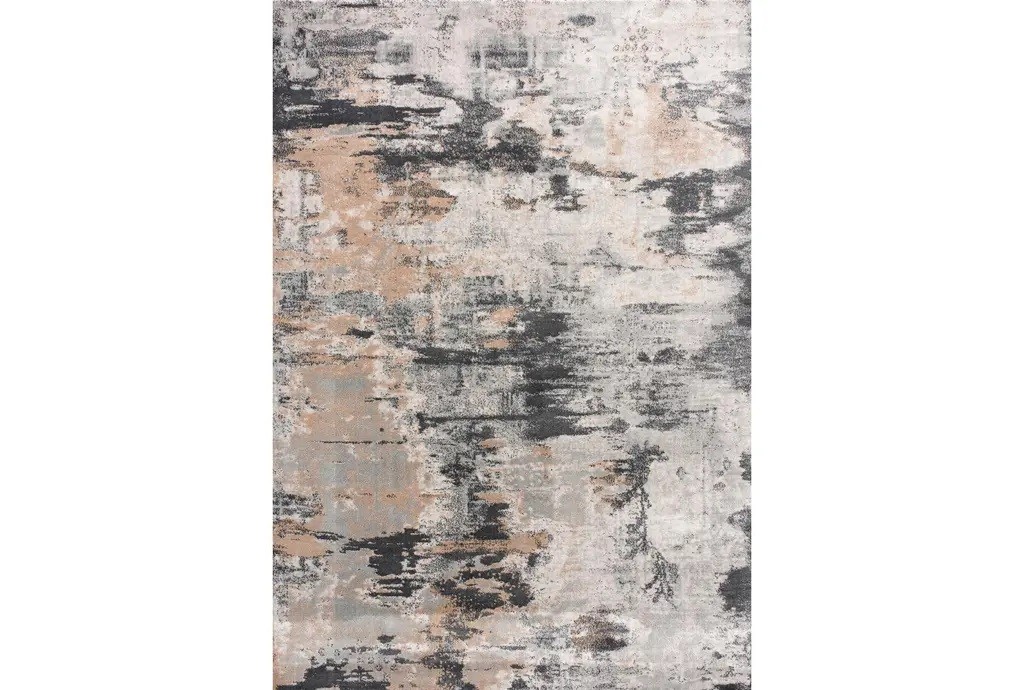 53x75 Distressed Abstract Grey/Beige Rug by Living Spaces