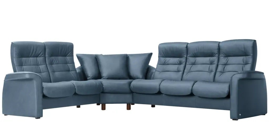 The Stressless Sapphire offers luxurious leather upholstery and sleek, contemporary curves. With reclining features and deep seating, this sectional is perfect for those seeking comfort and modern elegance.