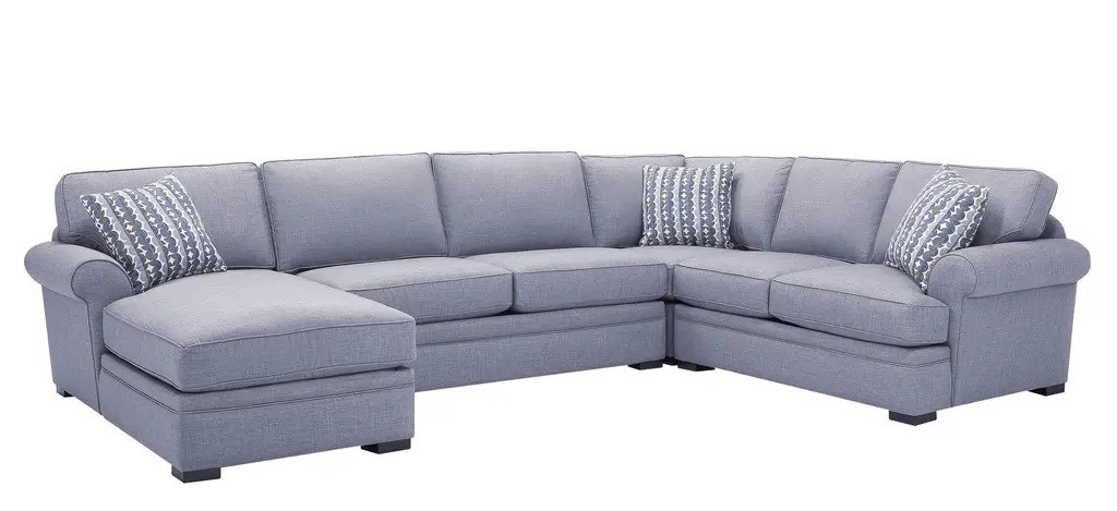 Modern yet sophisticated, the Wells sectional features soft twill fabric, sustainable wood legs, and plush cushions. It’s a stylish choice for family rooms or larger living spaces that need a balance of comfort and durability.