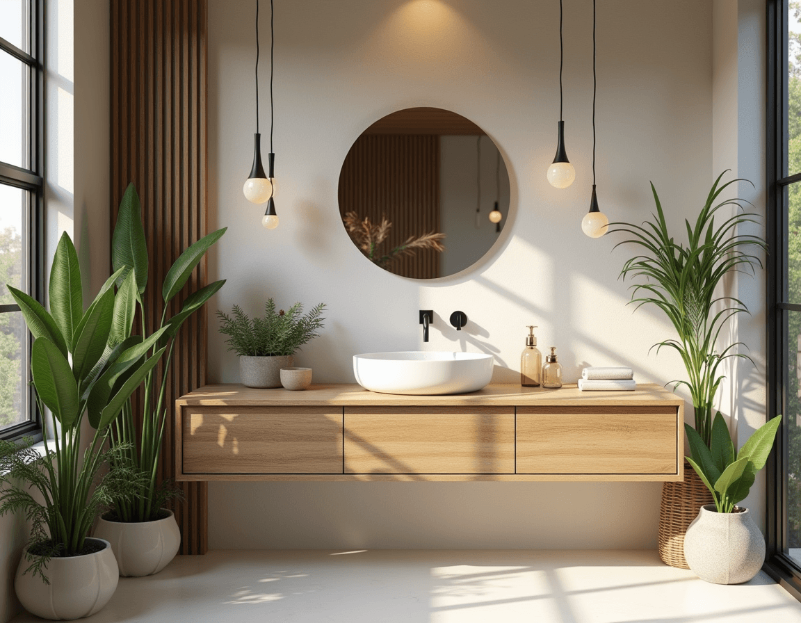 Your ceiling shouldn’t be an afterthought. A bright paint color or bold suspension lamp draws the eye upward, making a small bathroom feel taller and more dynamic while adding a touch of personality.