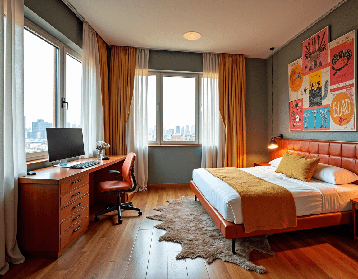 Use rugs and room dividers to separate your office space from the rest of the room. Additionally, try positioning your desk so it faces the wall or is angled away from the bed, creating natural boundaries. This encourages a mental distinction between “work mode” and “relax mode,” giving you more focus during the day and better sleep at night.