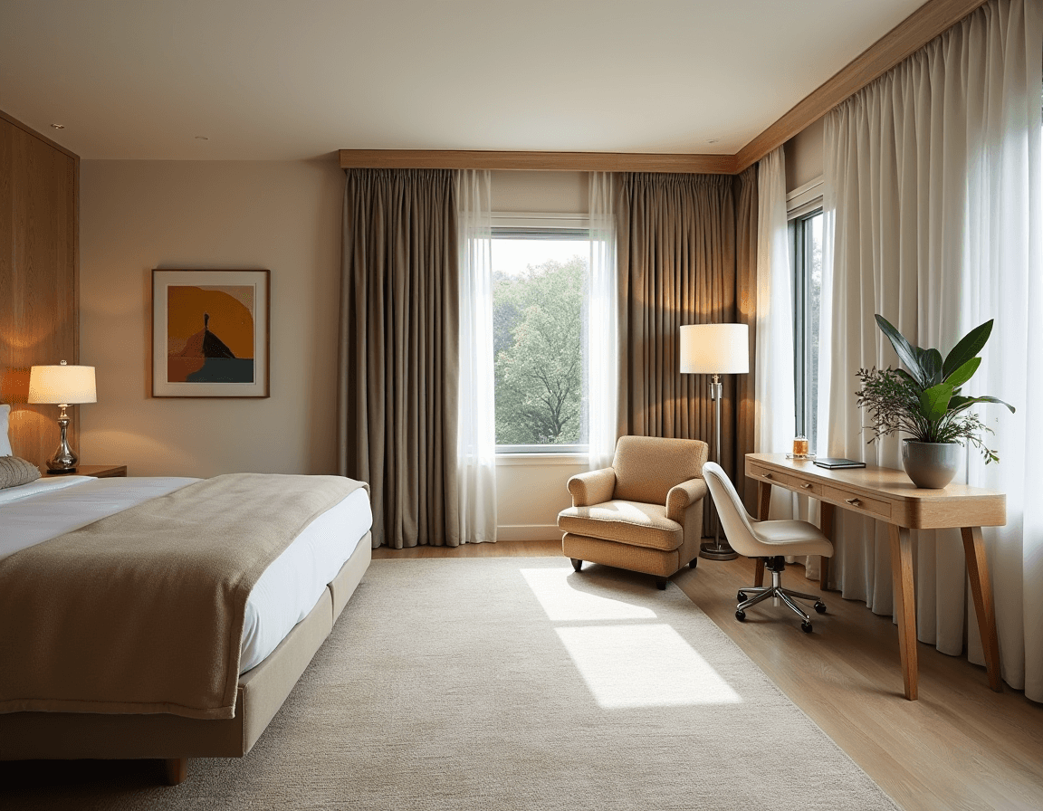 Go for multi-use pieces like desks with built-in shelves, wall-mounted work surfaces, or slim chairs that slide out of sight. Carefully chosen furniture keeps your room feeling airy while giving you a fully functional office space.
