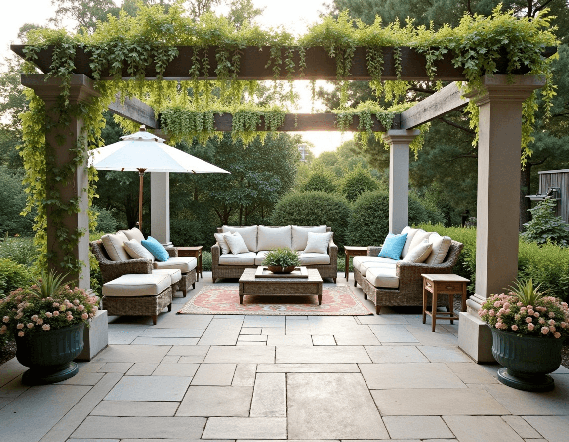 Going vertical is a clever way to add lush greenery to your patio without losing precious floor space. You can grow herbs, flowers, or trailing plants while keeping the rest of your space open for patio furniture and outdoor entertaining. Wall-mounted planters, tiered shelves, or even a slim ladder rack can turn a drab wall or stone patio into a mini jungle.