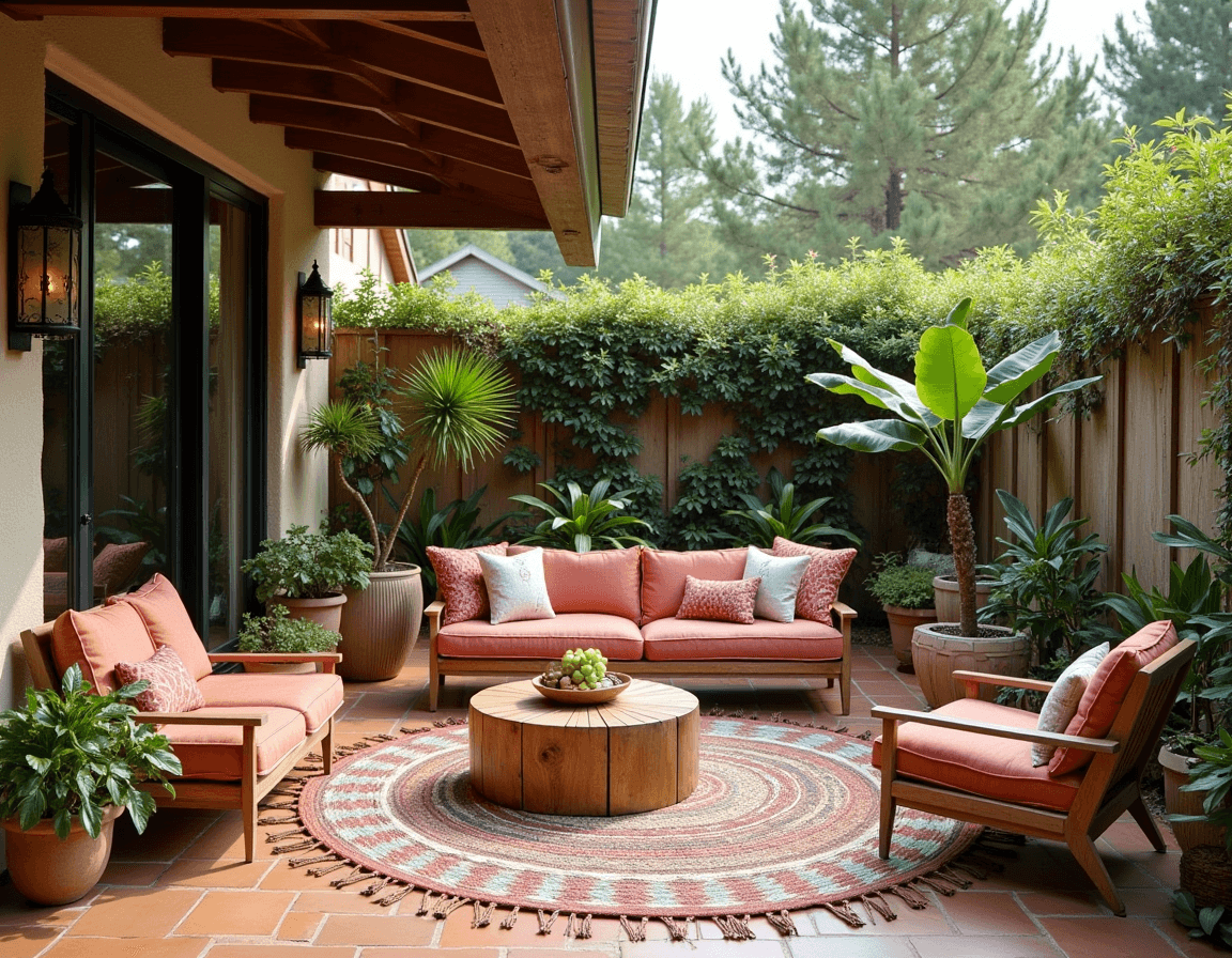 Think of an outdoor rug as your patio’s focal point. In small spaces, rugs help define zones, especially when there aren’t walls to do the job. A bold pattern or pop of color can anchor your seating area and make things feel more welcoming. In a concrete or stone patio, it softens hard surfaces and makes going barefoot more comfortable.