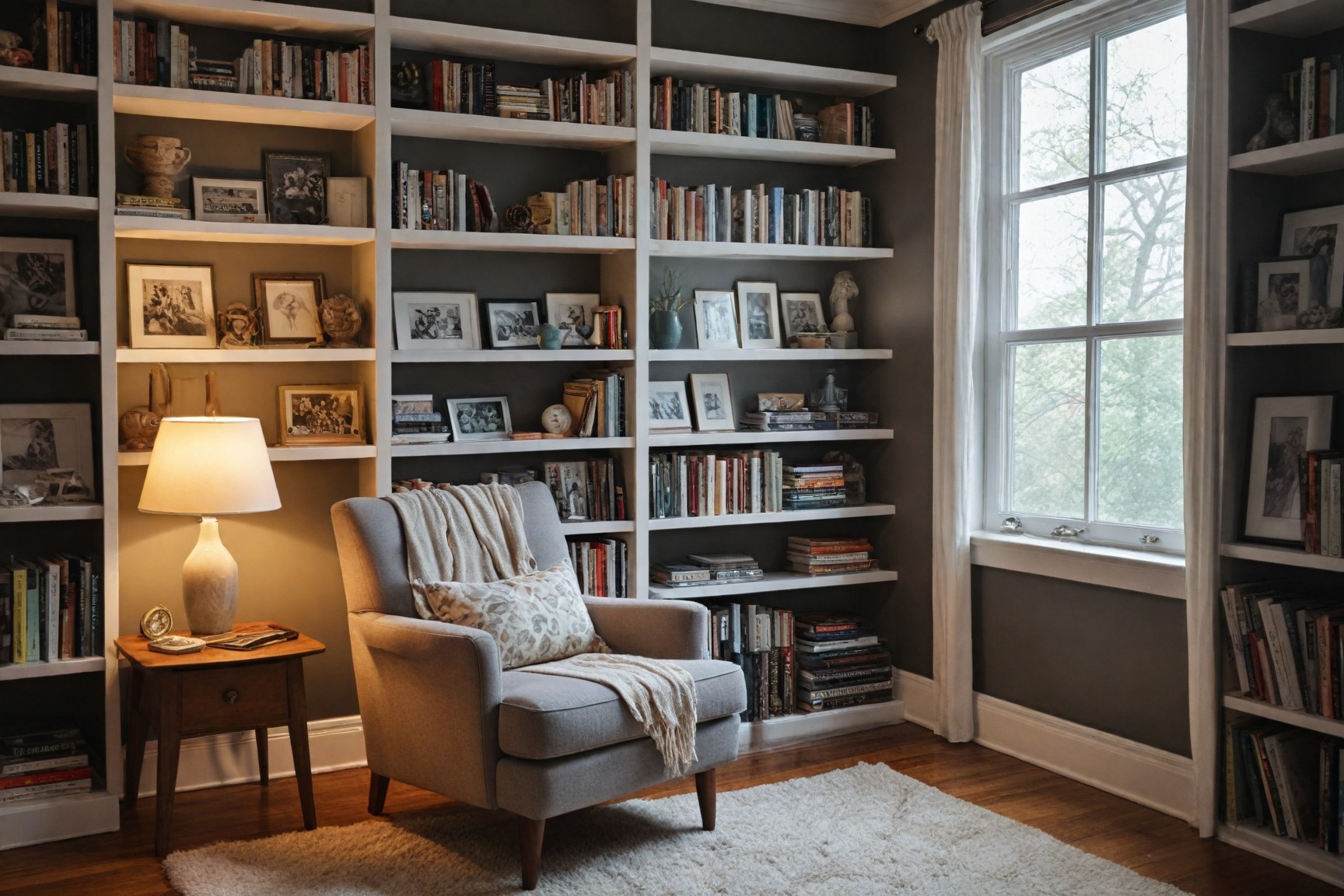 Design a comfortable reading nook with ample lighting, cozy seating, and easy access to reading materials.