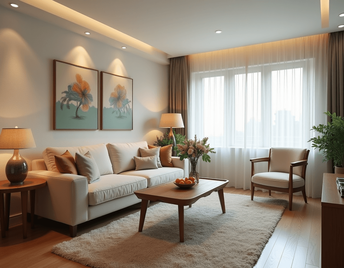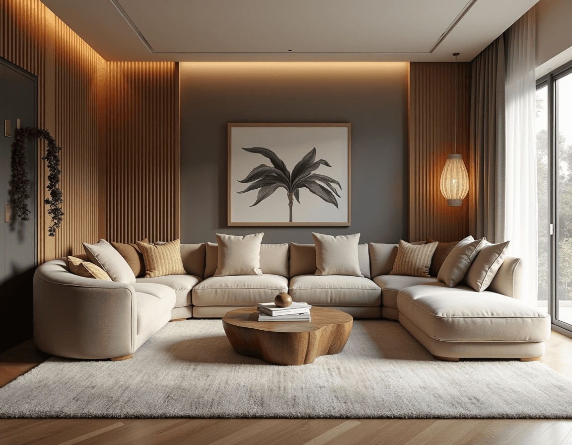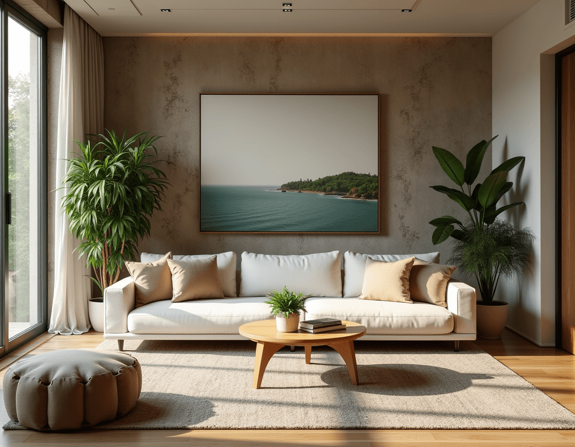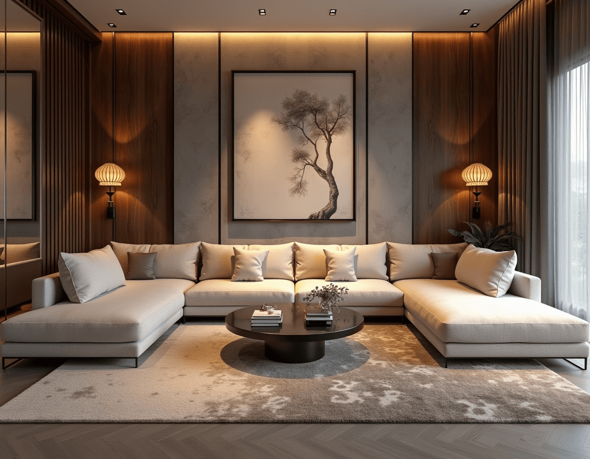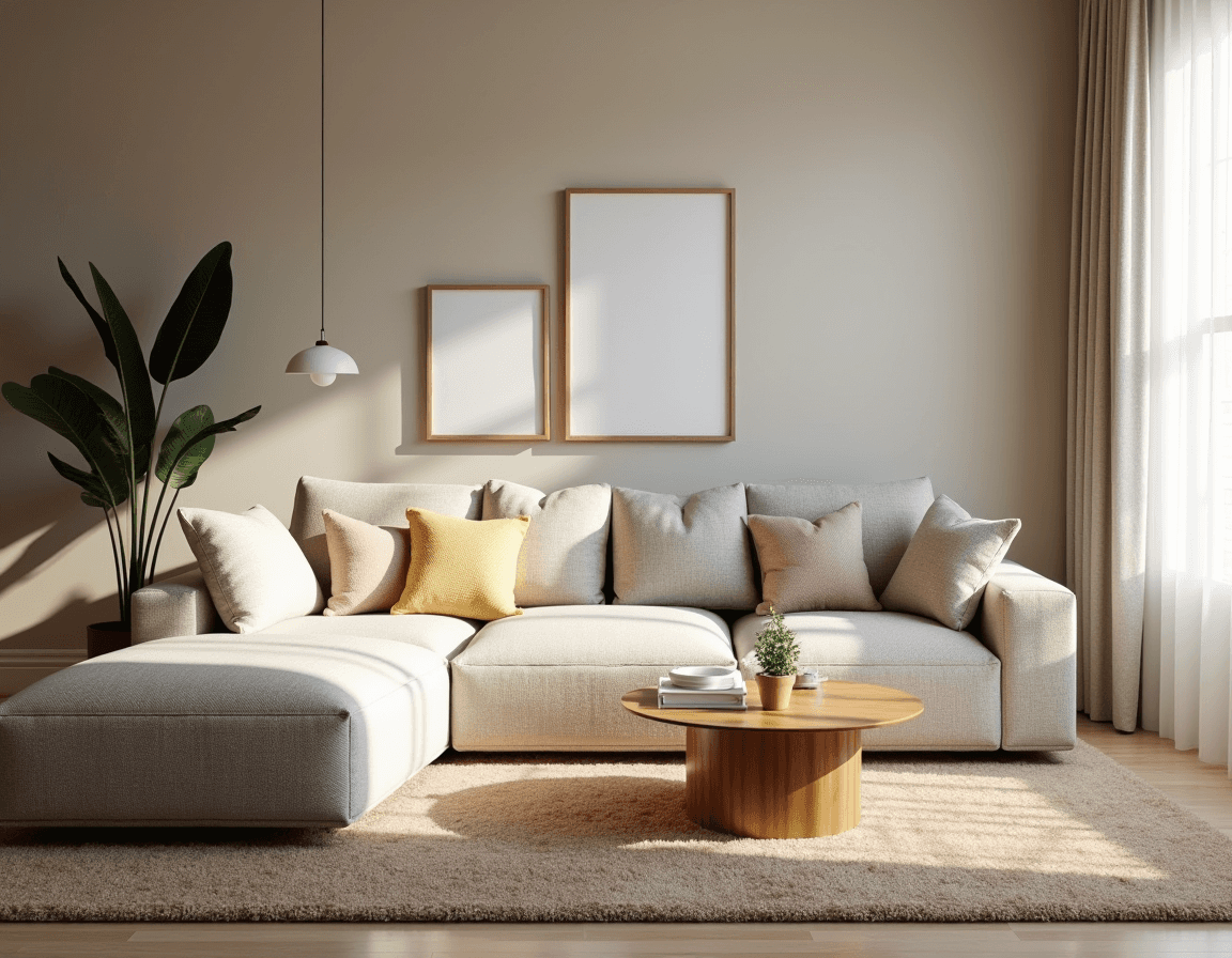 Measure the length and width of the area, leaving at least two to three feet of space on either side of your sofa for easy movement and comfort. AI visualizers can help you see how the sofa will fit within your room layout.