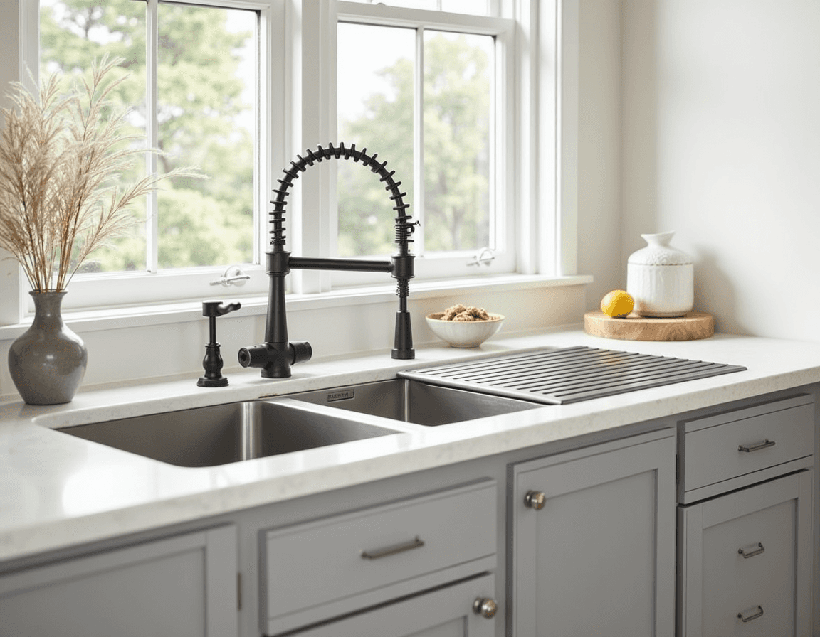 Stainless steel sinks: A kitchen classic, stainless steel sinks are durable, affordable, and resistant to stains and heat. They fit well in clean, modern kitchens, especially when paired with stainless steel appliances. However, they can show water spots and scratches over time.