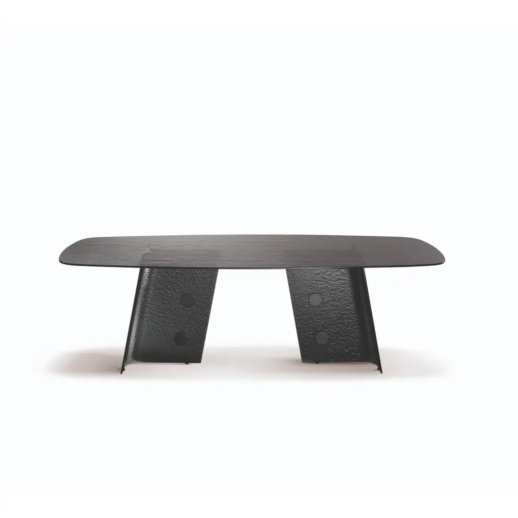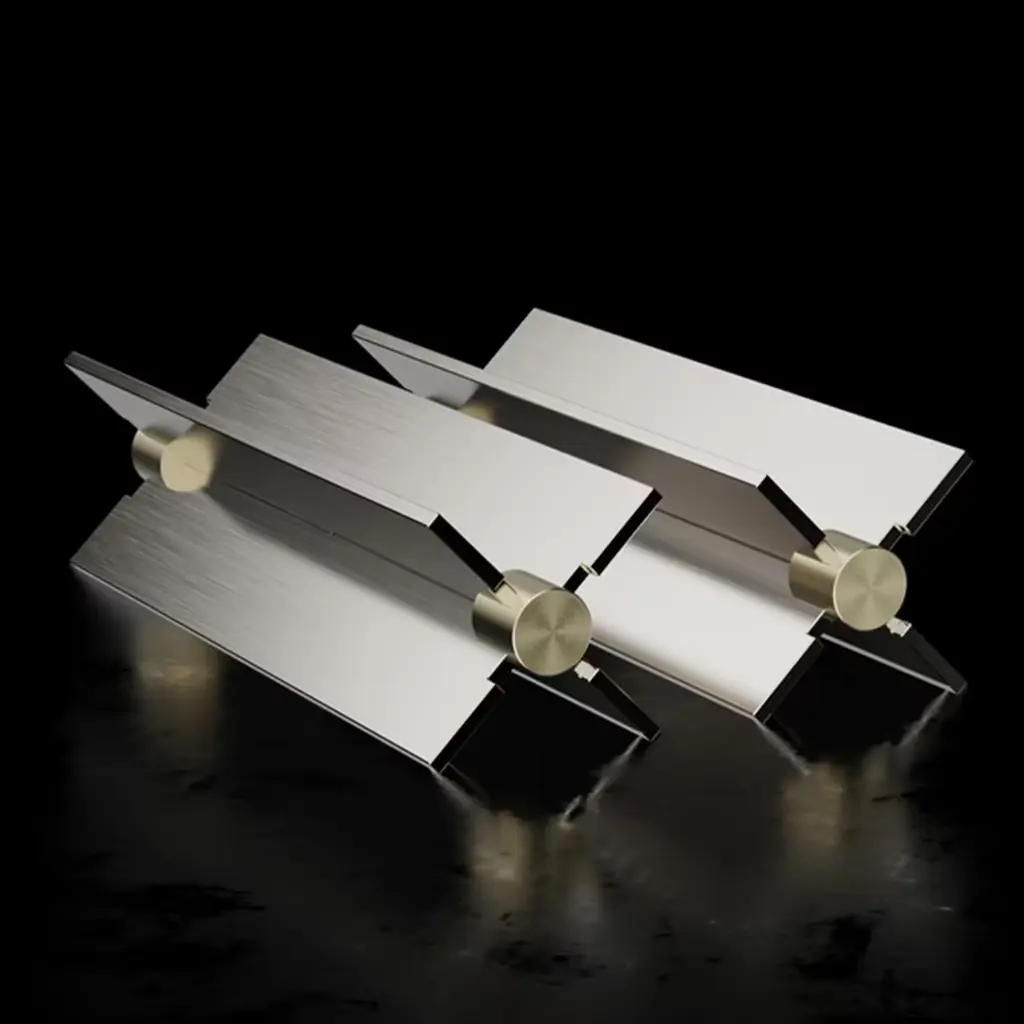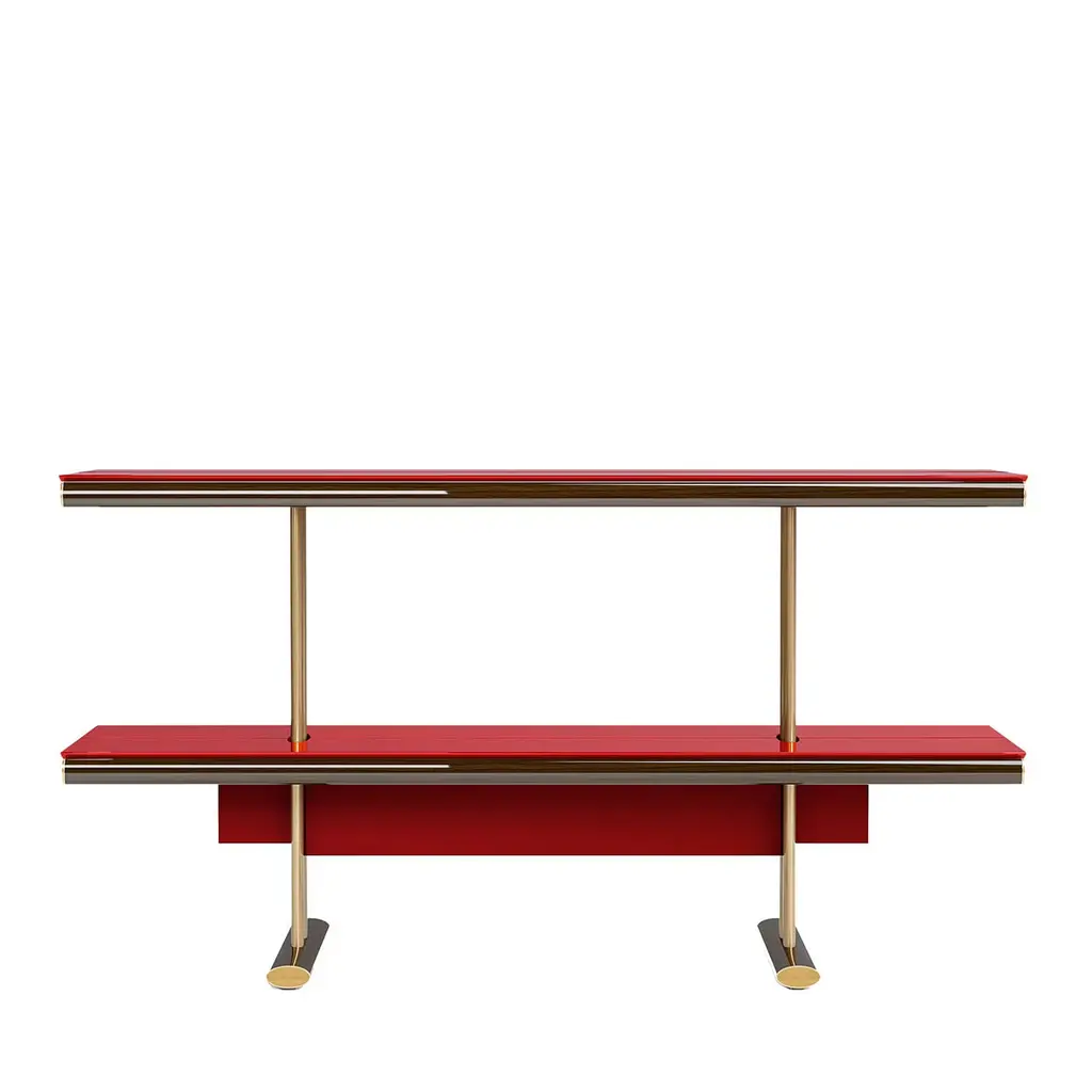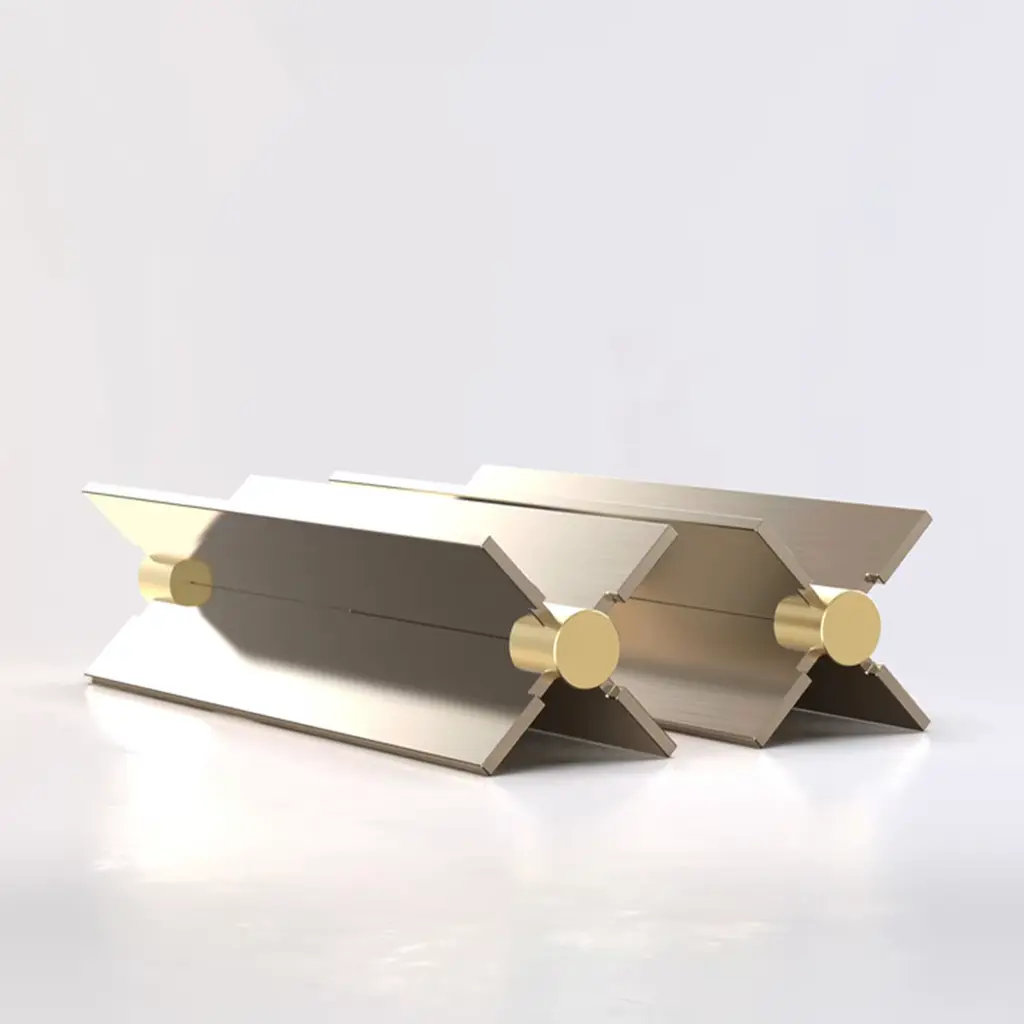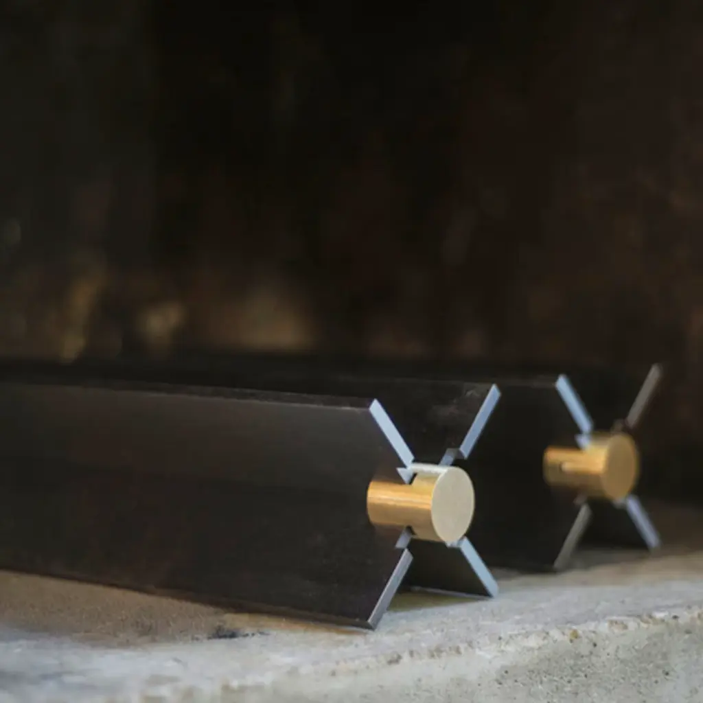 This pair of elegant andirons is made of solid steel with a bold solid brass round joint on each end. The minimalist design that effortlessly combines sharp edges with round shapes is an ideal complement to any interior.