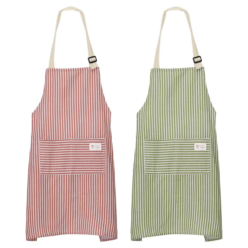 2Pack Kitchen Cooking Aprons Adjustable Chef Apron 2 Pockets - 75x68cm - Green/grey Stripes