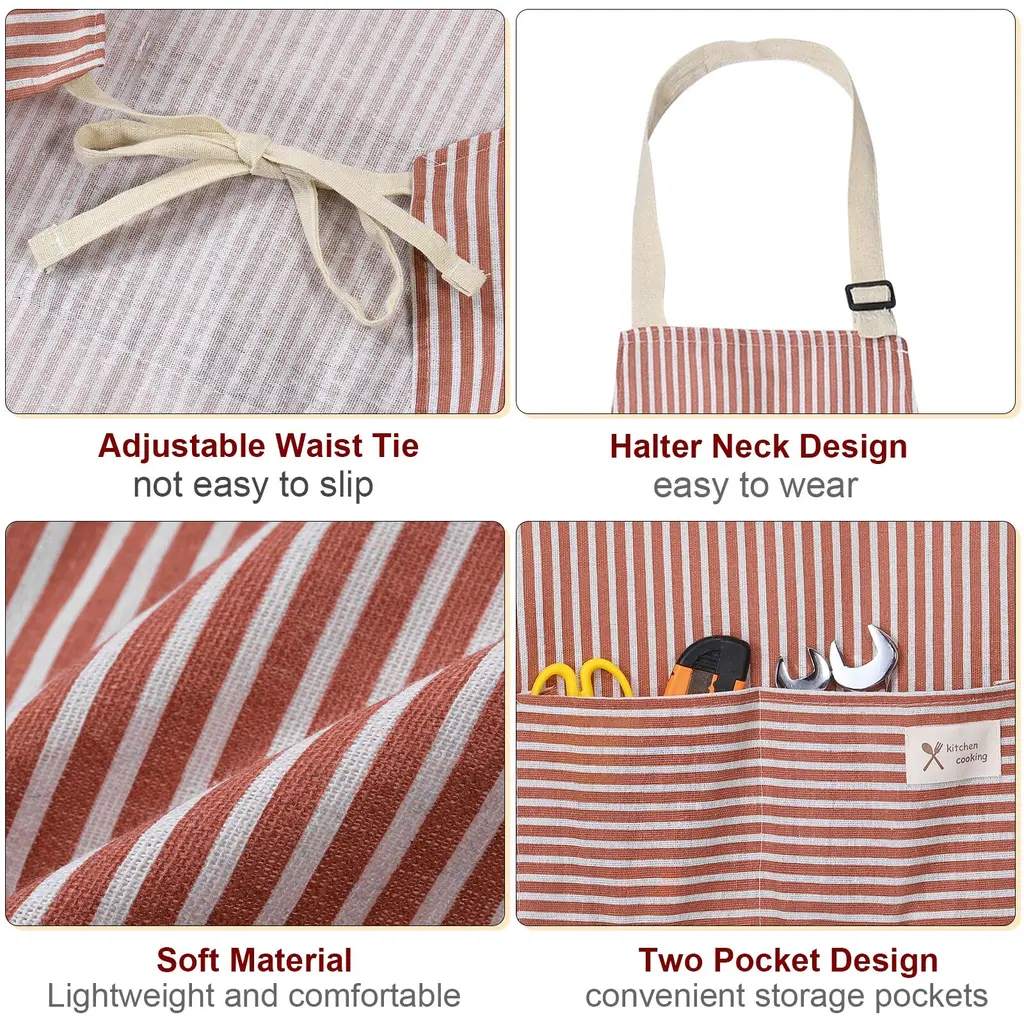 The cooking apron is made of cotton canvas, durable and waterproof which is easy to finish, not easy to fade and can be machine washed in cold water many times.The chef apron with adjustable neck strap can be easily changed to fit most sizes, and protect your sides with wrap-around coverage to prevent your clothes from getting wet or damaged.2 large pockets in the middle of the apron, convenient for storing various items, from brushes and pencils in the studio or art pottery to thermometers, cooking utensils and timers in the kitchen, mobile phones, recipe cards, seasoning packets, etc.The cotton apron can be used in the kitchen, garden, art class, coffee shop, flower shop and any type of studio. Suitable for art, artists, pottery, ceramics, crafts, painting, cooking, baking, cleaning and gardening.Notice: Do not place the apron near any hot cookware or flame.