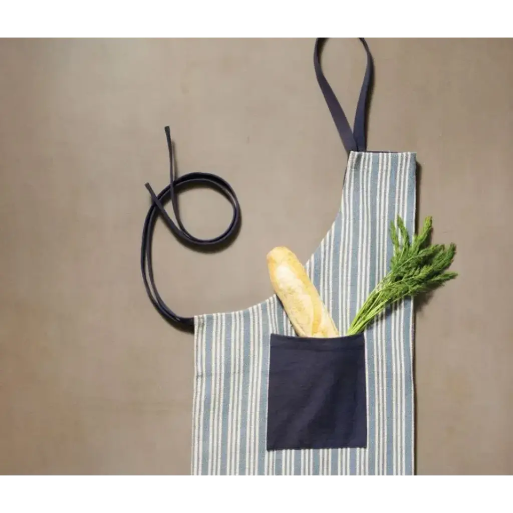 Finish: Light Blue Striped Material: Cotton Jute Our Bennett apron is soft yet heavy-duty in cotton jute. Light blue ticking stripes are accented with a navy pocket and adjustable straps. Available in adult and child sizes. Blue Pheasant's products are handmade with care by artisans using natural materials. They are not mass produced, so variation between products should be expected, and this is why we love them! It is these irregularities that makes Blue Pheasant what it is—a special brand whose collections are distinctly handmade, full of charm and originality you’ll never find in machine-made products.