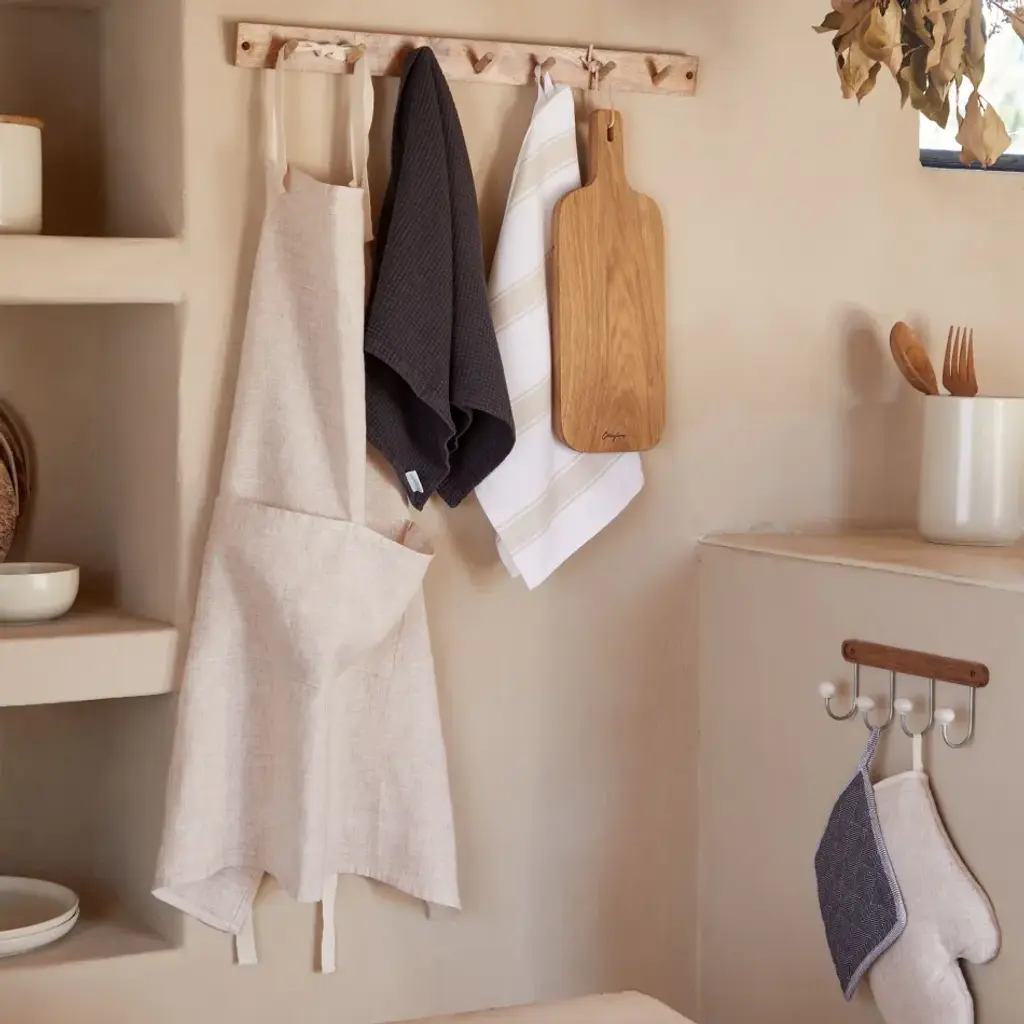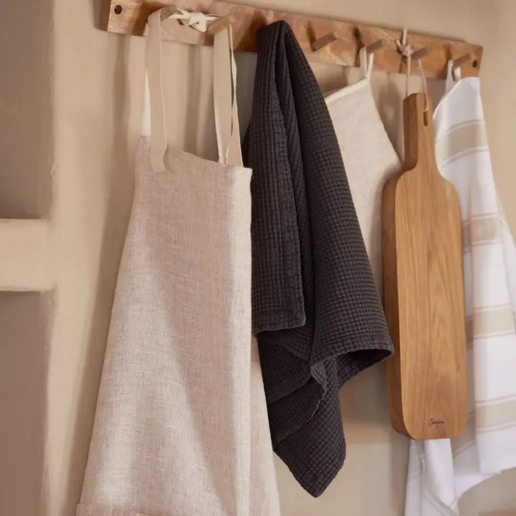 Discover our wide selection of kitchen linen essentials, from aprons, oven mitts, pot holders, to kitchen towels and bread bags. Responsibly produced, our kitchen linens are not only safe to use but also perfect for updating your space, bringing warmth and color.
