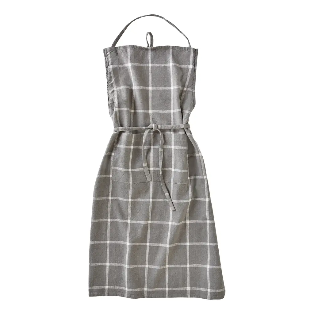 Classic Check Slub Bib Apron With Large Pocket And Waist Tie Grey, One Size Fits Most, Machine Wash, Grey - Grey
