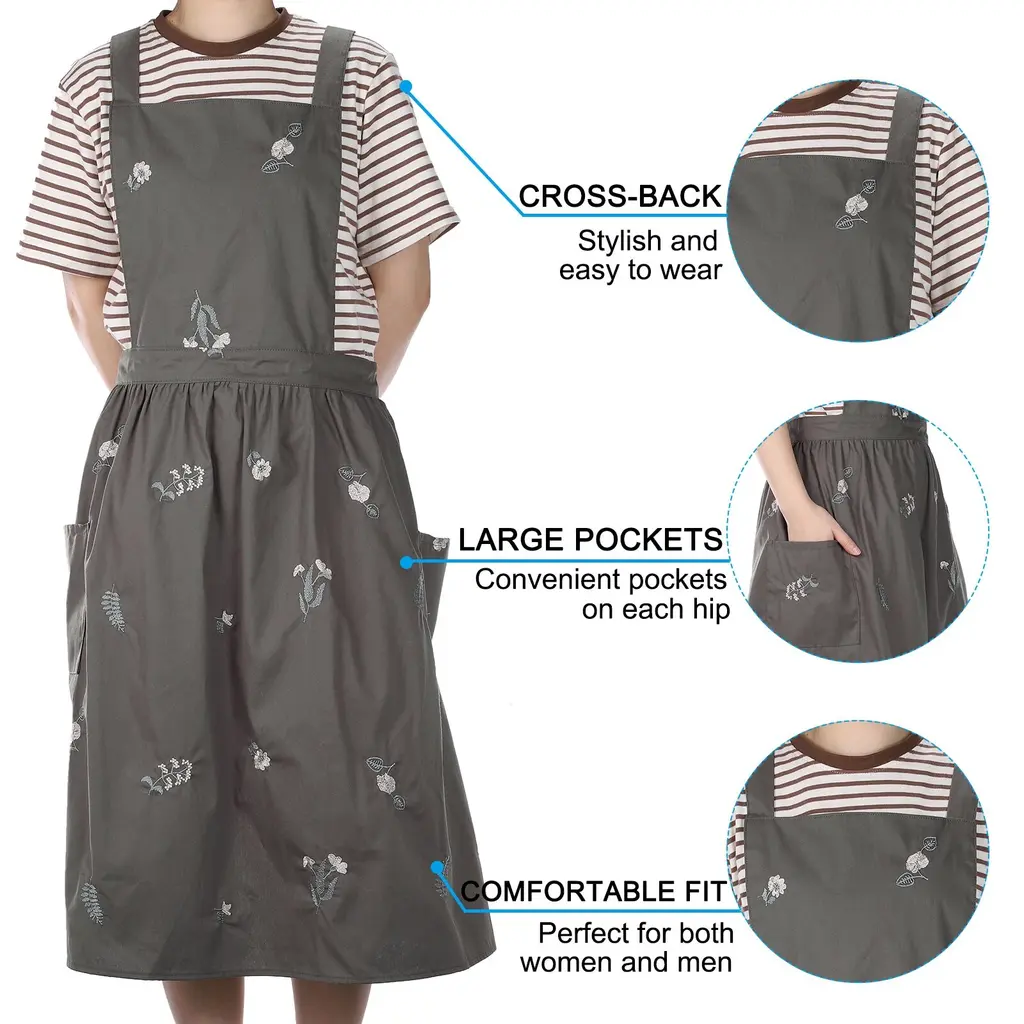 The aprons can be used for various purposes such as home, kitchen, cleaning, etc., providing you with neat clothes when working.Harvesting pouch apron is also suitable for those who enjoy gardening, crafts, planting and woodworking, it is a suitable and practical gift choice. People in occupation such as gardeners, plant harvesters and gardeners will also be happy with it.Whether in the kitchen or garden, this pinafore apron will be a convenient and stylish accessory.Specification:Material: CottonSize: 100 x 140cm/39.4 x 55.1 inch (L x W)Strap Size: 85 x 1.5cm/33.5 x 0.59 inch (L x W)Packing List: 1 Pack x Gardening ApronAdvantage:These kitchen aprons are design with large capacity pocket, the apron is equipped with a spacious quick release pocket for you to store tools and collected vegetables.The cotton apron is made of cotton material for comfort and safety. The thick material of this apron is highly absorbent so you can stay clean and dry while you work, widely used for Women and Men.With adjustable cross strap design, the garden apron distributes weight and the shape adjusts to fit your size, making it more stable and comfortable to wear.Instruction:Slip the apron over your body and secure it with the straps at the back.Note:Avoid exposing the apron to excessive heat or fire to prevent damage.