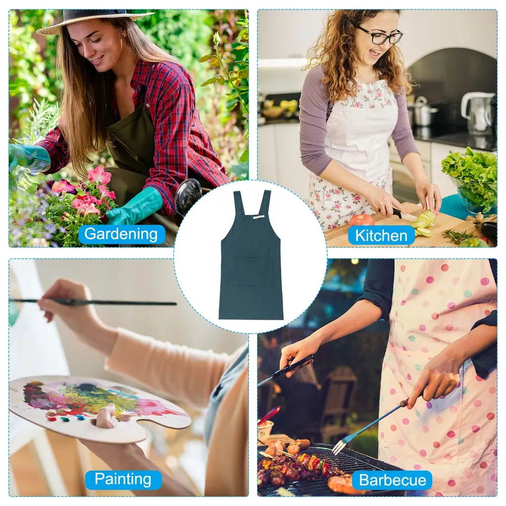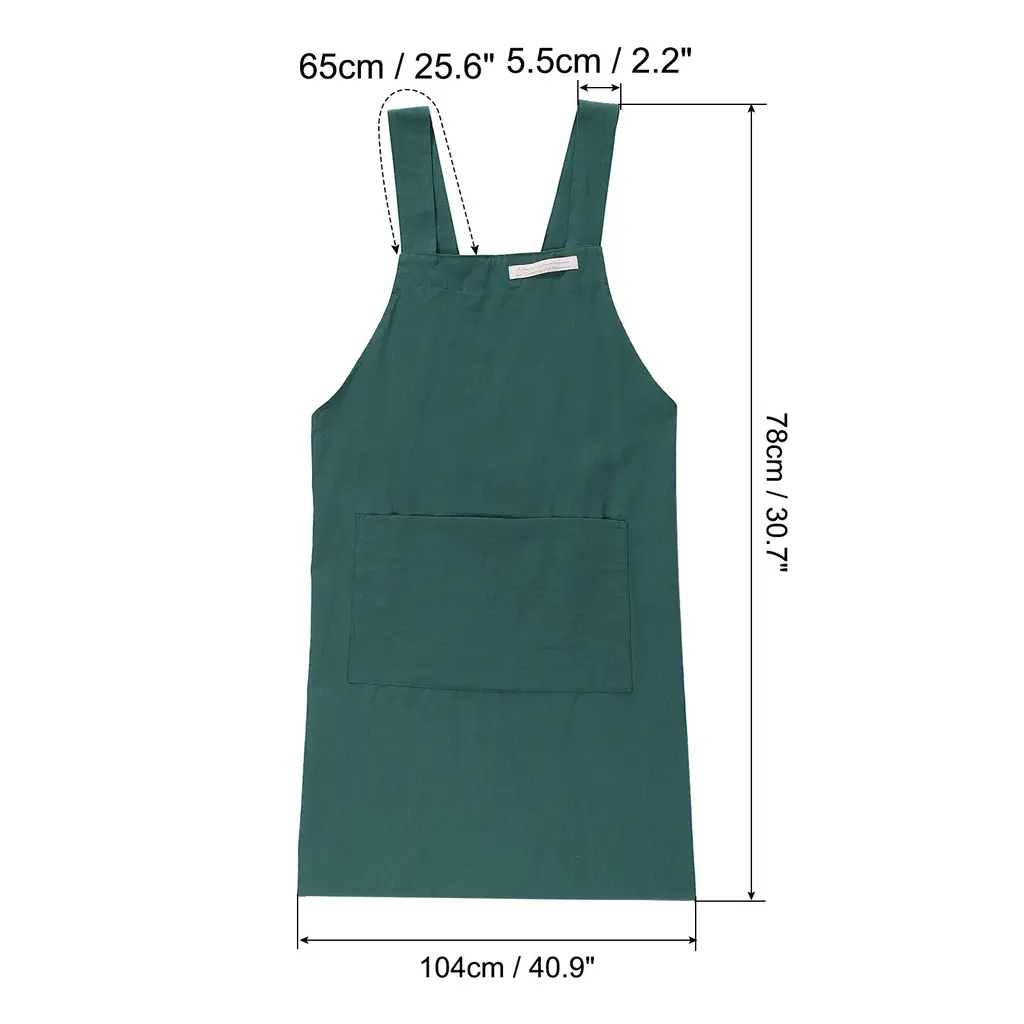 The aprons can be used for various purposes such as home, kitchen, cleaning, etc., providing you with neat clothes when working.Harvesting pouch apron is also suitable for those who enjoy gardening, crafts, planting and woodworking, it is a suitable and practical gift choice. People in occupation such as gardeners, plant harvesters and gardeners will also be happy with it.Whether in the kitchen or garden, this pinafore apron will be a convenient and stylish accessory.Specification:Material: CottonSize: 78 x 104 cm/30.7 x 40.9 inch (L x W)Strap Size: 65 x 5.5 cm/25.6 x 2.2 inch (L x W)Packing List: 1 Pack x Gardening ApronAdvantage:These kitchen aprons are design with large capacity pocket, the apron is equipped with a spacious quick release pocket for you to store tools and collected vegetables.The cotton apron is made of cotton material for comfort and safety. The thick material of this apron is highly absorbent so you can stay clean and dry while you work, widely used for Women and Men.With adjustable cross strap design, the garden apron distributes weight and the shape adjusts to fit your size, making it more stable and comfortable to wear.Instruction:Slip the apron over your body and secure it with the straps at the back.Note:Avoid exposing the apron to excessive heat or fire to prevent damage.